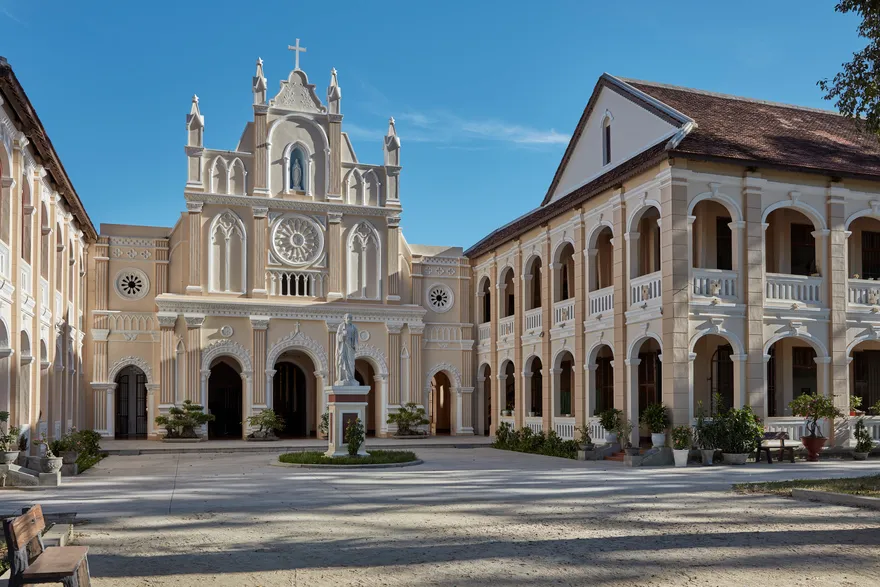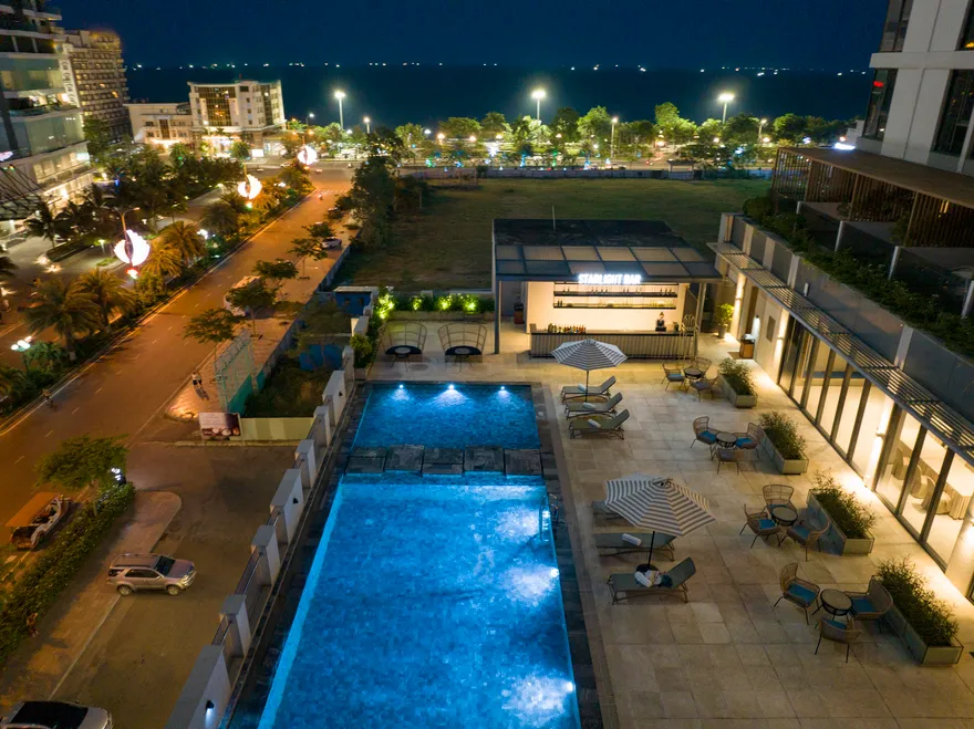 Vị thế của khu nghỉ dưỡng được định vị tại khu vực Bãi Dài, Ghềnh Ráng, cách trung tâm thành phố Quy Nhơn khoảng 10 km – một khoảng cách đủ để tách biệt khỏi nhịp sống đô thị nhưng vẫn đảm bảo tính kết nối. Địa hình “tựa sơn hướng thủy” với những vách đá tự nhiên không chỉ tạo nên một hàng rào an ninh vô hình mang lại cảm giác an tâm che chở, mà còn thiết lập một vi khí hậu ổn định cho kỳ nghỉ. Hành trình tiếp cận cũng được chăm chút tinh tế thông qua dịch vụ xe Limousine riêng biệt từ sân bay Phù Cát hay ga Diêu Trì, giúp duy trì dòng chảy cảm xúc sang trọng ngay từ khoảnh khắc du khách vừa đặt chân tới Bình Định.