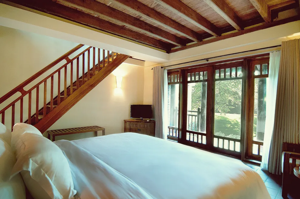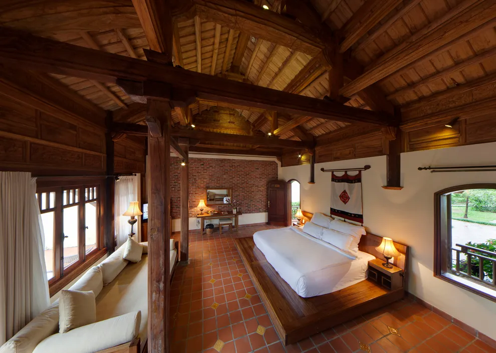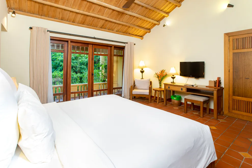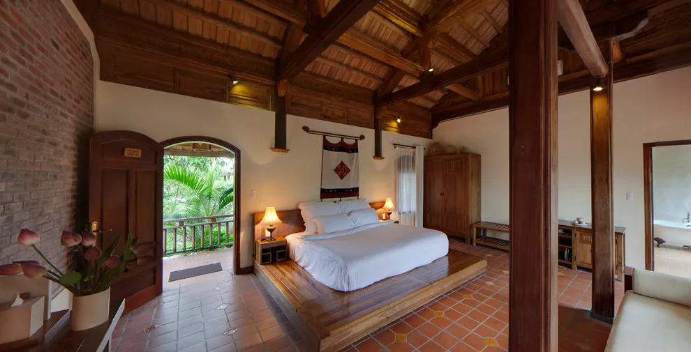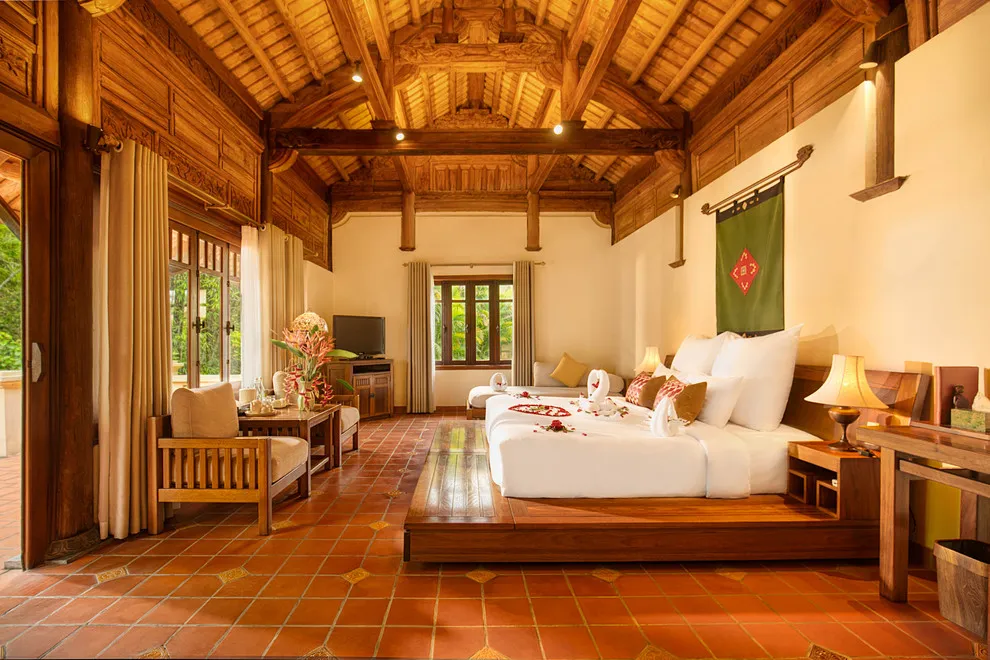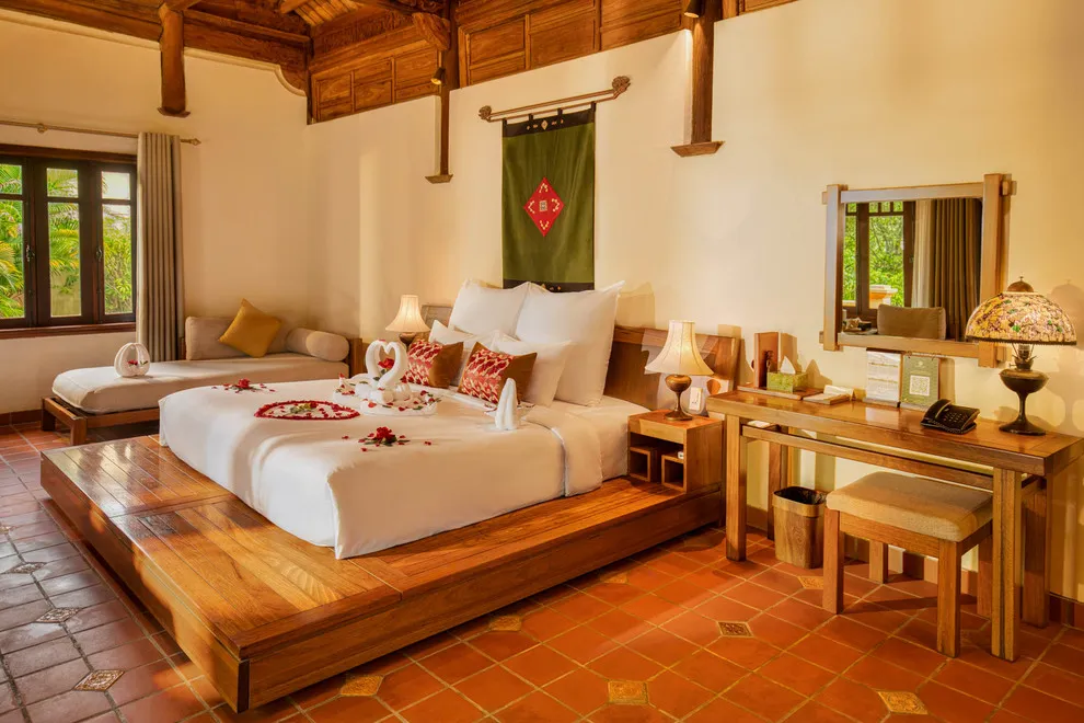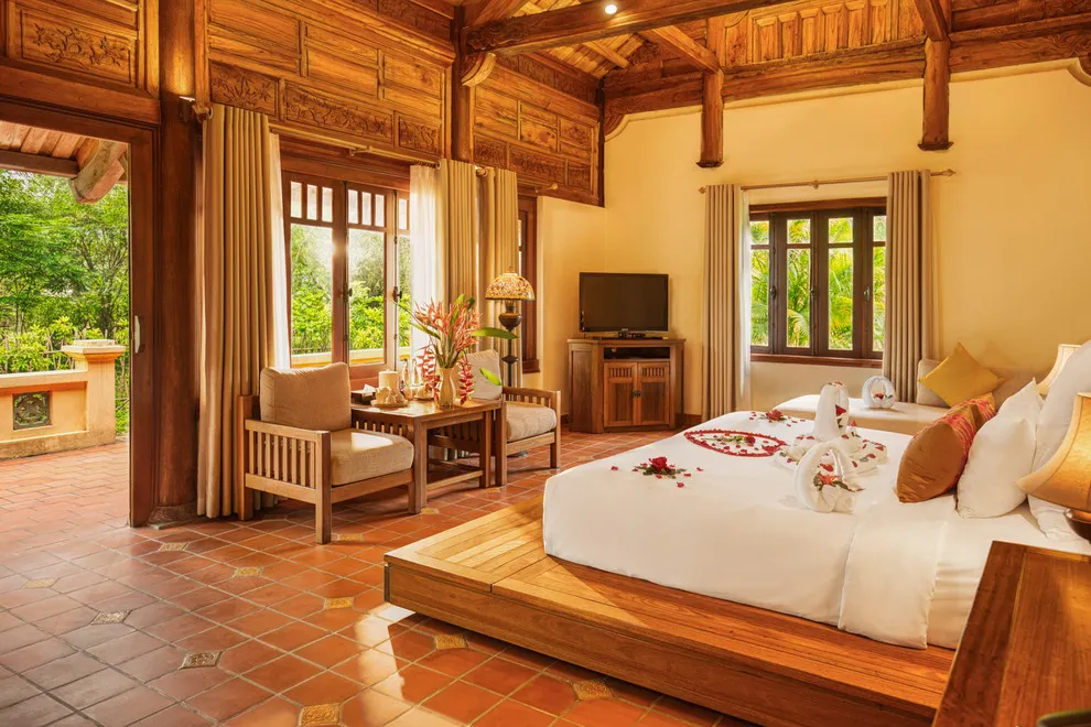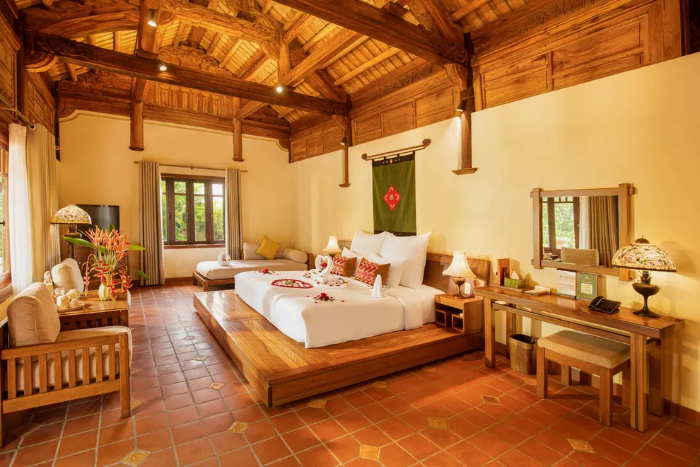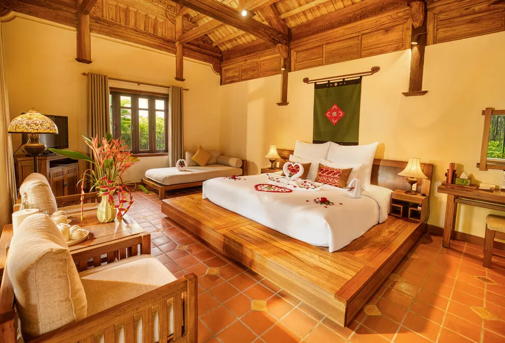 Hệ thống lưu trú tại Emeralda Vân Long được thiết kế đa dạng nhằm nâng niu cảm xúc của từng nhóm du khách. Hạng Superior mang vẻ đẹp tinh tế, tối giản với view hướng vườn xanh mướt, trong khi hạng Deluxe lại gây ấn tượng bởi không gian cổ kính và bồn tắm nằm sang trọng. Đối với các gia đình đa thế hệ hoặc nhóm bạn, hạng Duplex Family với thiết kế gác lửng hai tầng là lựa chọn tối ưu để vừa đảm bảo sự riêng tư vừa giữ được tính gắn kết. Đặc biệt, hạng Imperial mang phong thái của một “biệt phủ” thượng lưu với phòng khách riêng biệt, tái hiện chuẩn mực sống của các gia đình danh giá thời xưa.