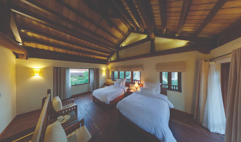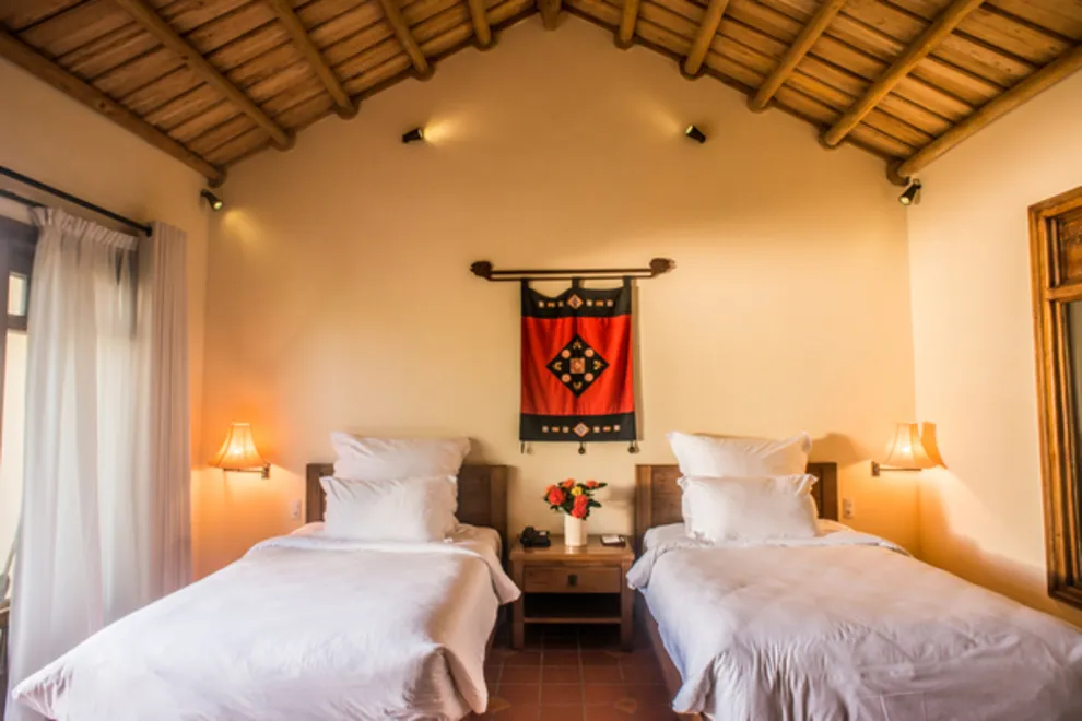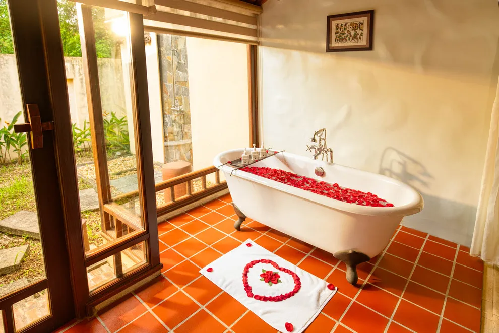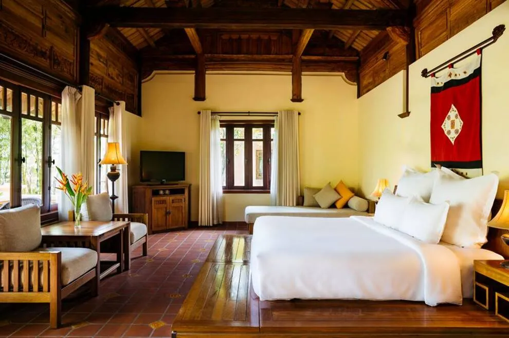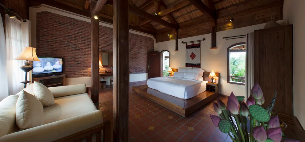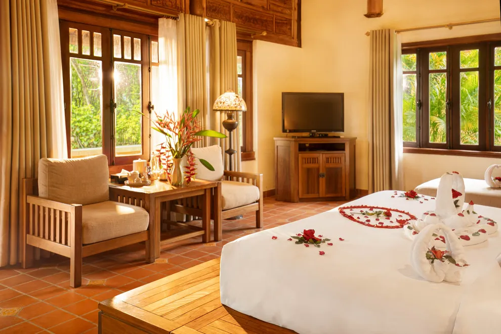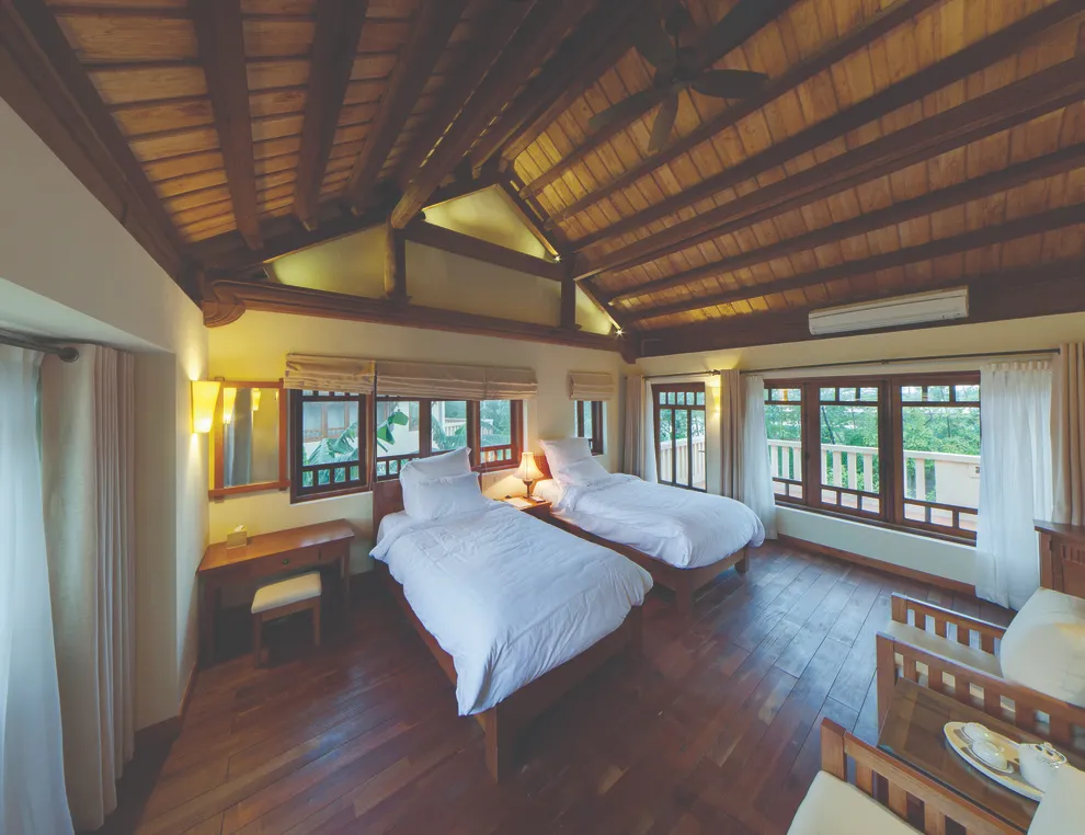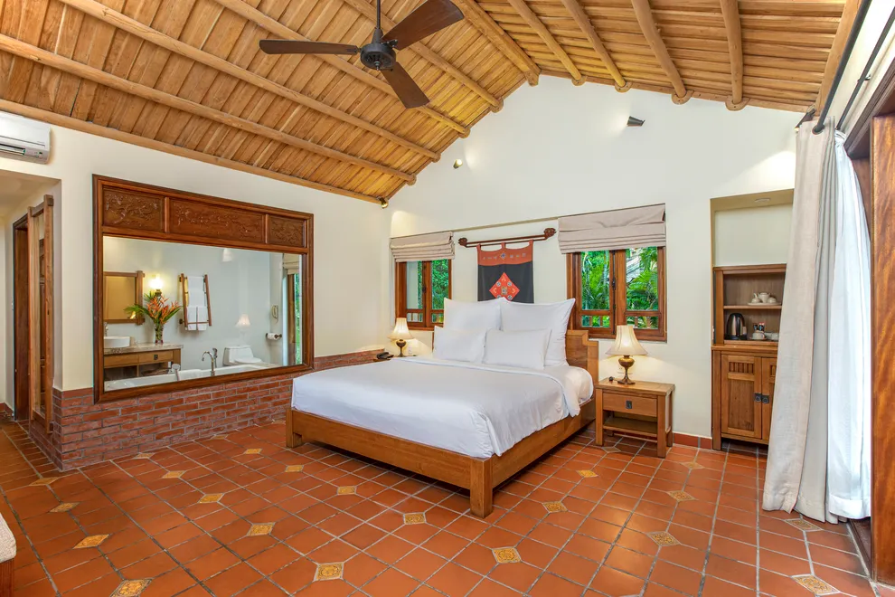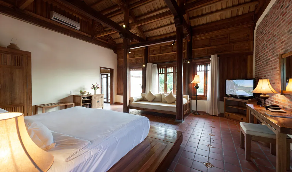 Hệ thống lưu trú tại Emeralda Vân Long được thiết kế đa dạng nhằm nâng niu cảm xúc của từng nhóm du khách. Hạng Superior mang vẻ đẹp tinh tế, tối giản với view hướng vườn xanh mướt, trong khi hạng Deluxe lại gây ấn tượng bởi không gian cổ kính và bồn tắm nằm sang trọng. Đối với các gia đình đa thế hệ hoặc nhóm bạn, hạng Duplex Family với thiết kế gác lửng hai tầng là lựa chọn tối ưu để vừa đảm bảo sự riêng tư vừa giữ được tính gắn kết. Đặc biệt, hạng Imperial mang phong thái của một “biệt phủ” thượng lưu với phòng khách riêng biệt, tái hiện chuẩn mực sống của các gia đình danh giá thời xưa.