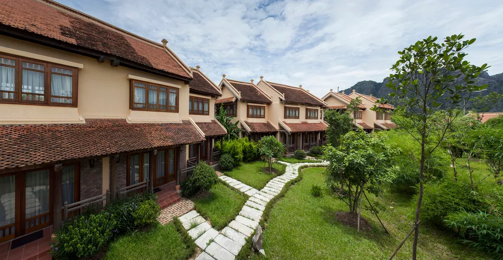 Giữa nhịp sống hối hả, Emeralda Resort Ninh Bình tại khu vực Vân Long đứng vững như một biểu tượng của sự tĩnh lặng và di sản. Được ví như một “ngôi làng xanh” ẩn mình bên bờ kỳ quan, khu nghỉ dưỡng tọa lạc tại thôn Tập Ninh, xã Gia Vân, huyện Gia Viễn, nằm trọn trong quần thể Khu bảo tồn thiên nhiên đầm Vân Long – khu bảo tồn đất ngập nước lớn nhất miền Bắc Việt Nam. Với quy mô diện tích khai thác và vùng đệm lên đến 100 ha, Emeralda tập trung tối đa vào việc tạo ra một hệ sinh thái hài hòa, nơi con người và thiên nhiên cùng chung sống, từng được vinh danh là Khu nghỉ dưỡng xanh sang trọng và đẳng cấp nhất thế giới.