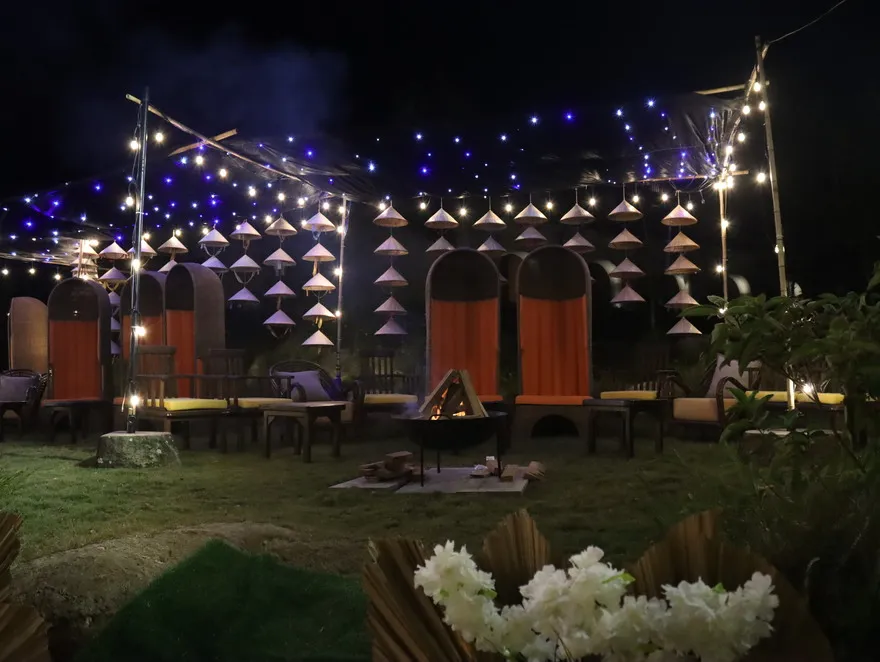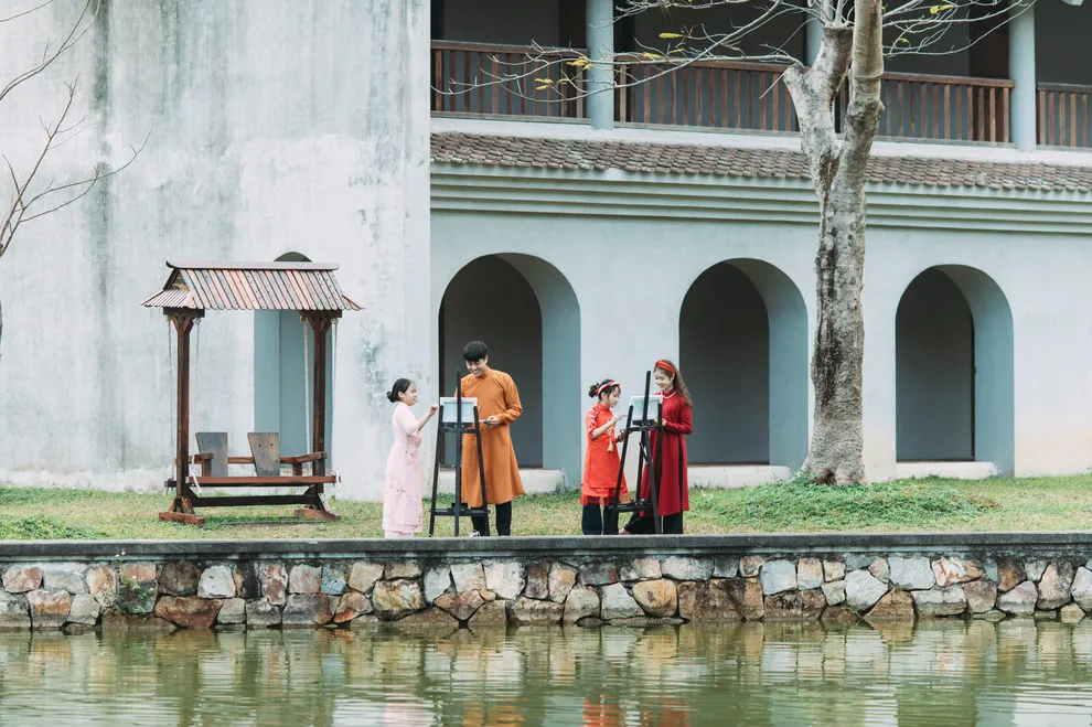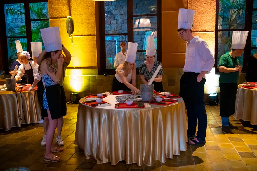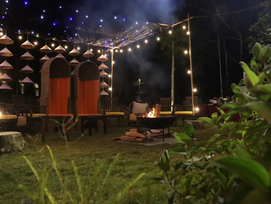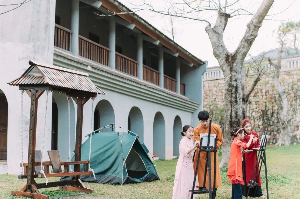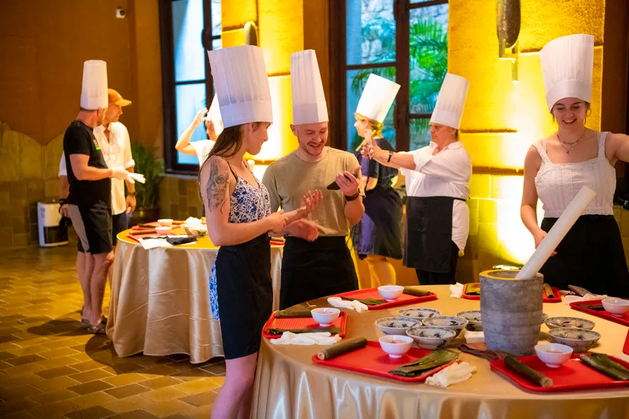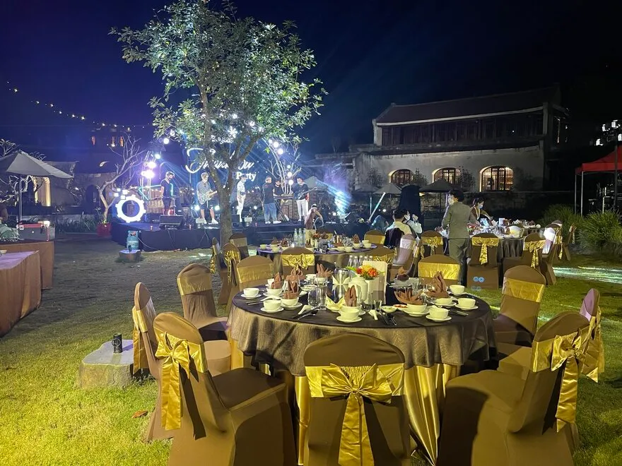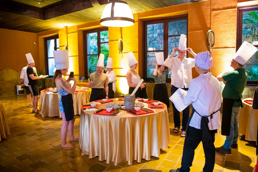 Về mặt văn hóa, Đêm hội Làng Nương diễn ra từ 20:00 – 21:00 tại sân đình Phượng Vũ là hoạt động không thể bỏ qua. Đây là chương trình biểu diễn văn nghệ dân gian sôi động và hoàn toàn miễn phí cho du khách lưu trú. Ngoài ra, bạn còn có thể trải nghiệm các làng nghề thủ công truyền thống như làm nón lá, chuồn chuồn tre, sáo trúc hoặc cưỡi ngựa dạo quanh làng. Tất cả tạo nên một hành trình trọn vẹn, nơi du khách vừa được nghỉ dưỡng, vừa được đắm mình trong bản sắc văn hóa Việt Nam.