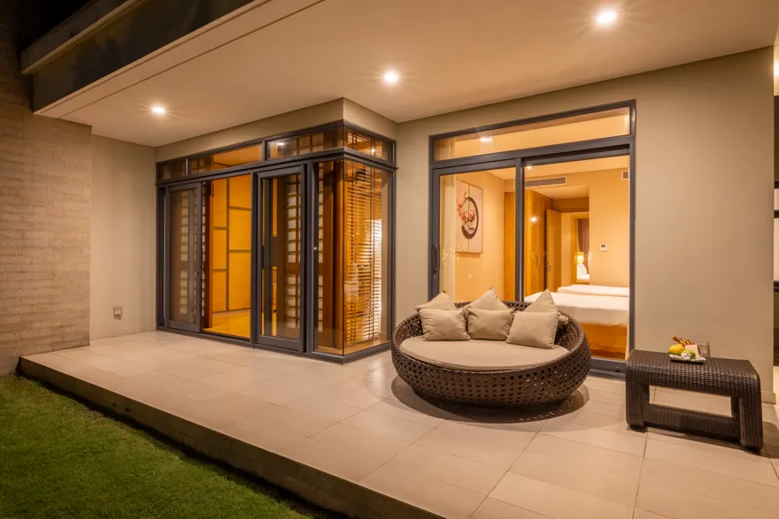 Tọa lạc tại J02 The Ocean Villas, đường Trường Sa, quận Ngũ Hành Sơn, khu nghỉ dưỡng sở hữu vị thế “tựa sơn hướng thủy” hiếm có giữa đại dương bao la và danh thắng Ngũ Hành Sơn linh thiêng. Vị trí chiến lược này cho phép du khách kết nối dễ dàng với sân bay Quốc tế Đà Nẵng trong khoảng 32 phút lái xe, di chuyển đến phố cổ Hội An trong 25 phút và kề bên sân golf BRG chỉ với 3 phút đi xe điện. Đây là điểm dừng chân lý tưởng để vừa tận hưởng sự biệt lập cần thiết cho thiền định, vừa không tách rời các tiện ích đô thị hiện đại.