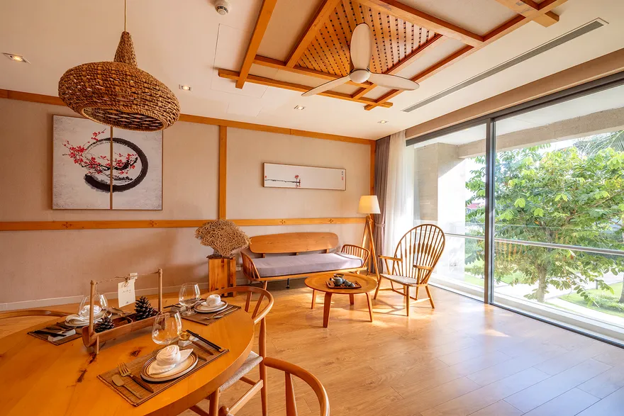 Hệ thống lưu trú “Nơi An Trú” (MM Living) bao gồm các căn hộ Suite rộng rãi từ $70 m^2$ đến $140 m^2$ với đầy đủ phòng khách, bếp hiện đại và xe đạp riêng, mang lại cảm giác của một ngôi nhà thứ hai thân thuộc. Các hạng phòng như Giao Hòa, Vườn Thong Dong, hay Bước Chân Thong Dong được thiết kế để kết nối trực tiếp với vườn thiền và hồ bơi, khuyến khích du khách tự chăm sóc bản thân qua những việc giản dị hằng ngày. Mỗi không gian đều được bảo trì kỹ lưỡng với chỉ số sạch sẽ và thoải mái được khách hàng đánh giá rất cao.