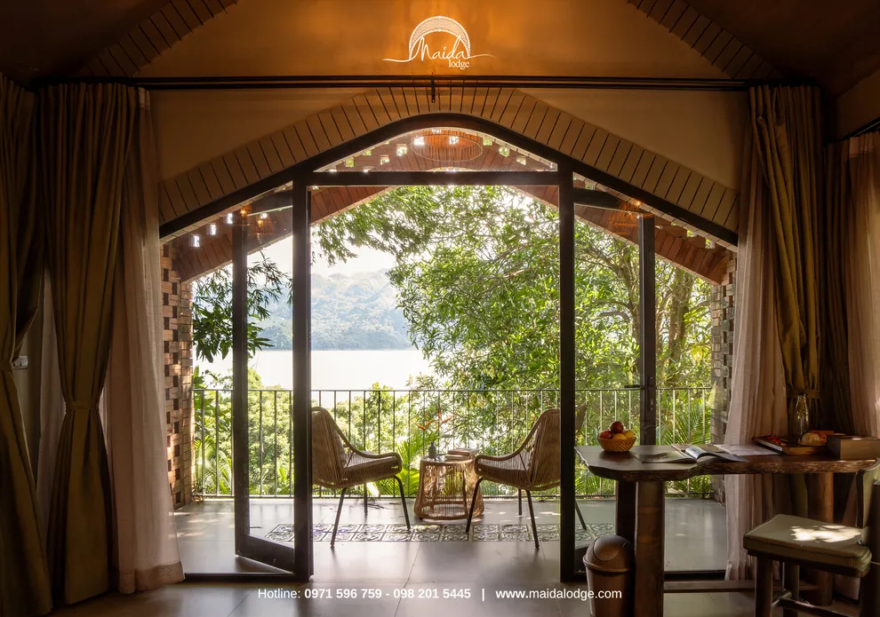 Nằm giữa bức tranh thủy mặc kỳ vĩ của hồ Hòa Bình, Maida Lodge hiện lên như một trạm dừng chân lý tưởng cho những ai đang tìm kiếm sự cân bằng và tĩnh lặng tuyệt đối. Cái tên Maida mang đậm dấu ấn lịch sử, gợi nhắc về vùng đất “Châu Mai Đà” xưa cũ, nơi hội tụ nét đẹp nguyên bản của Mai Châu và Đà Bắc. Với triết lý phát triển “lưng tựa núi, mặt hướng sông”, khu nghỉ dưỡng mang phong cách một “vịnh Hạ Long trên núi”, mang đến không gian thiền định riêng tư, tách biệt hoàn toàn khỏi những náo nhiệt, ồn ào của phố thị để du khách thực sự được kết nối sâu sắc với chính mình.