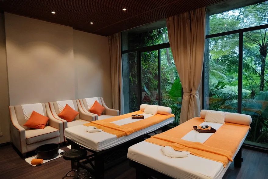 Điểm đặc sắc nhất chính là các chương trình khám phá độc quyền được khu nghỉ dưỡng thiết kế và vận hành dành riêng cho khách lưu trú. Ngay từ sảnh chính, bạn có thể tham gia chuyến tham quan bằng xe điện để khám phá các phế tích Pháp cổ hoặc đăng ký các tour trekking chuyên nghiệp do resort tổ chức. Khu nghỉ dưỡng cung cấp đầy đủ bộ dụng cụ trekking chuyên dụng gồm gậy, mũ và ba lô để khách trải nghiệm hành trình xuyên rừng tre đến suối Ngọc Hoa, hoặc thám hiểm nhà tù Pháp bí mật tại cốt 1.000m. Những hành trình này không chỉ là một chuyến đi bộ đơn thuần mà là đặc quyền để cư dân của Melia Ba Vi kết nối sâu sắc với lịch sử và thiên nhiên hùng vĩ của vùng đất này.