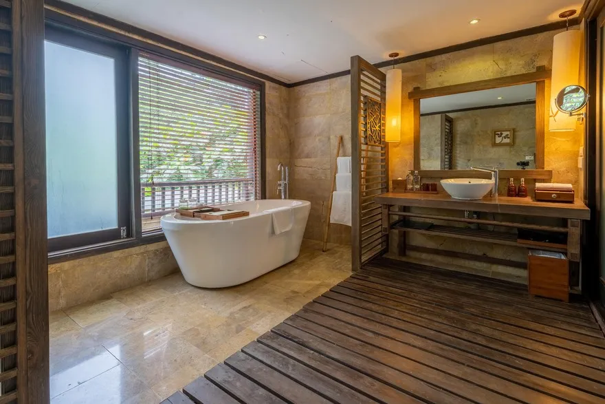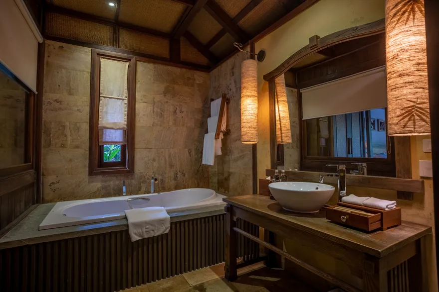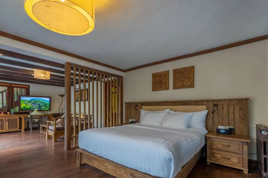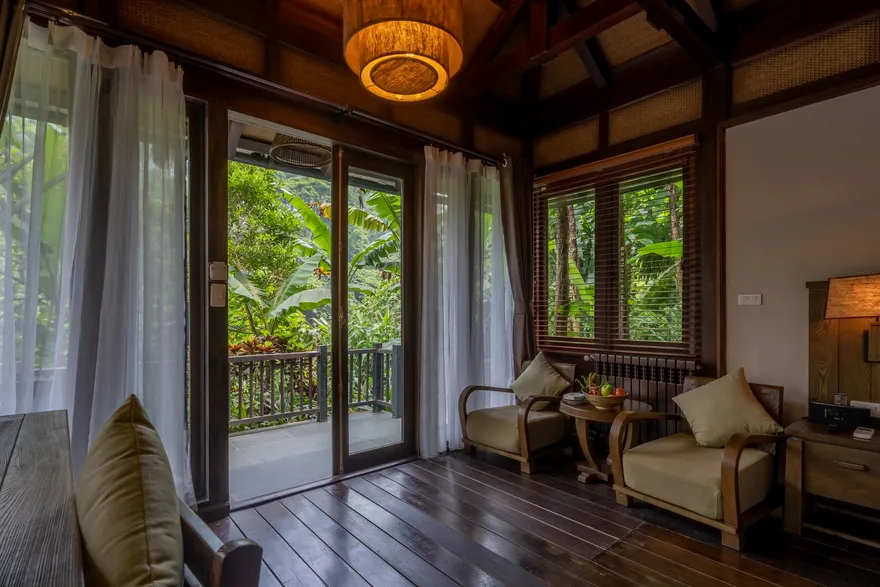 Hệ thống lưu trú tại đây gồm 55 đơn vị từ các hạng phòng tiêu chuẩn đến những căn biệt thự hồ bơi riêng biệt lập. Đặc biệt, hạng phòng Deluxe được thiết kế không lắp đặt tivi, thay thế bằng các tác phẩm nghệ thuật nhằm khuyến khích du khách ngắt kết nối hoàn toàn với công nghệ để hòa mình vào thiên nhiên. Khách lưu trú sẽ được tận hưởng những đặc quyền cao cấp như bữa sáng buffet tại nhà hàng Senses, chuyến tham quan phế tích bằng xe điện, và sử dụng bể bơi bốn mùa cùng phòng tập Gym hiện đại.
