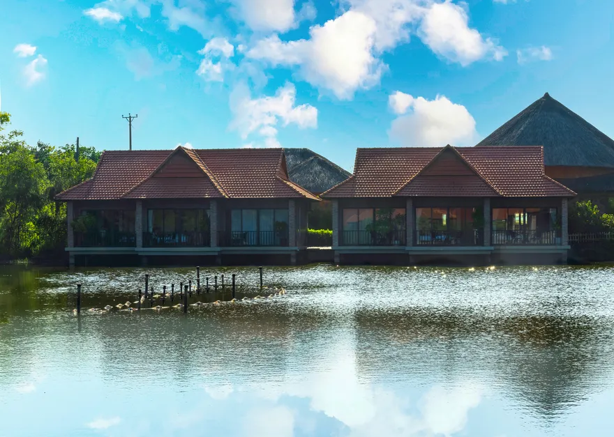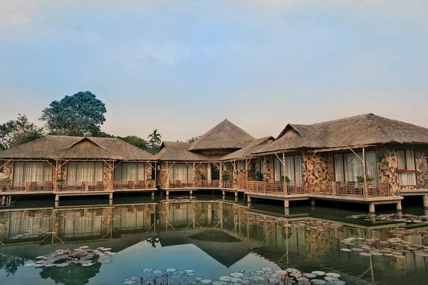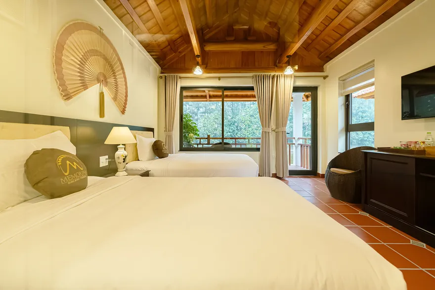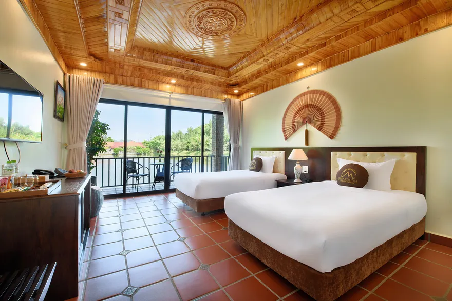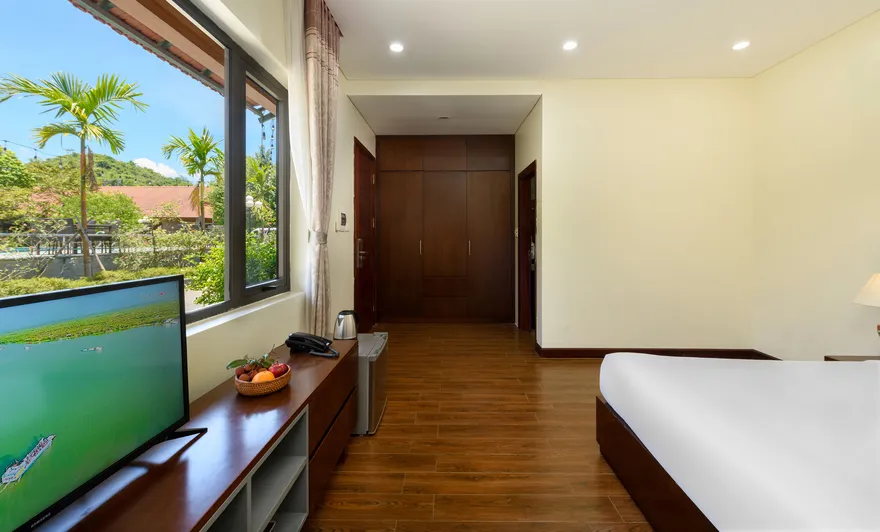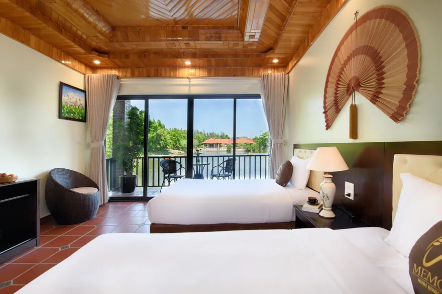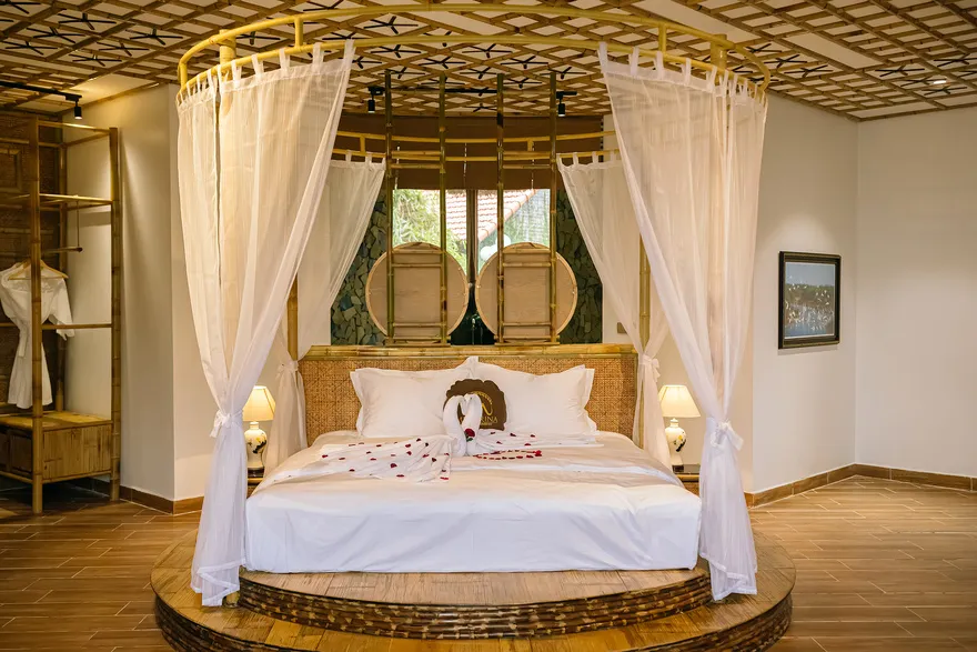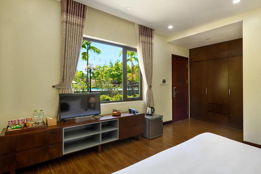 Về hệ thống lưu trú, resort sở hữu tổng cộng 32 phòng nghỉ đa dạng từ các hạng phòng khách sạn tiêu chuẩn đến các bungalow và biệt thự nguyên căn. Các hạng phòng như Deluxe Garden View, Senior Deluxe Lake View hay các căn Suite và Villa đều được trang bị đầy đủ tiện nghi đạt chuẩn 4 sao như điều hòa hai chiều, wifi tốc độ cao và minibar. Tầm nhìn hướng hồ được đánh giá là một trong những giá trị gia tăng lớn nhất, tạo ra một không gian tĩnh lặng tuyệt đối cho việc nghỉ ngơi, trong khi các hạng phòng cao cấp hơn còn sở hữu phòng khách riêng hoặc ban công rộng với tầm nhìn panorama toàn cảnh.
