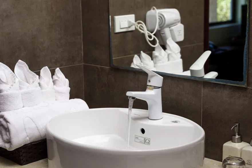 Tất cả các hạng phòng từ tiêu chuẩn đến cao cấp đều được trang bị đầy đủ máy sấy tóc, ấm siêu tốc và két sắt bảo mật. Riêng đối với bàn là (bàn ủi), nếu không có sẵn trong phòng, bạn có thể liên hệ bộ phận lễ tân để được hỗ trợ mượn miễn phí hoặc sử dụng dịch vụ giặt là có thu phí.