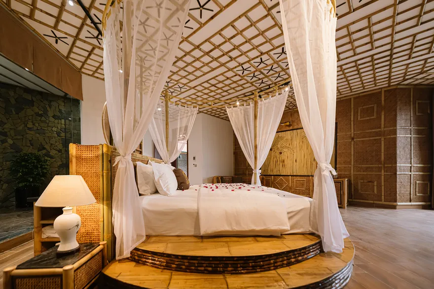 Để tối ưu không gian riêng tư theo phong cách bungalow làng quê, resort chủ yếu bố trí các phòng độc lập. Tuy nhiên, đối với gia đình đông người, bạn có thể ưu tiên đặt các căn Bungalow 2-3 phòng ngủ hoặc Villa nguyên căn để có không gian sinh hoạt chung kết nối với nhau.