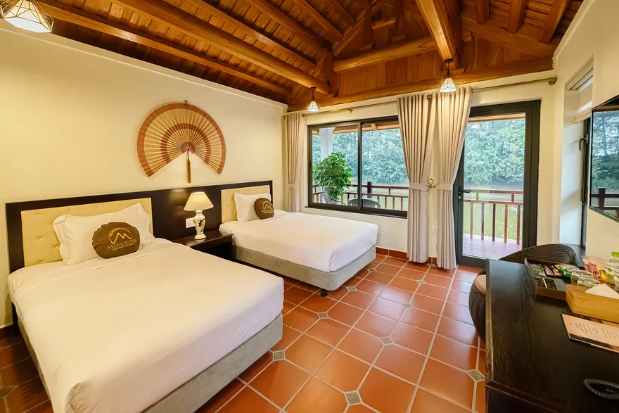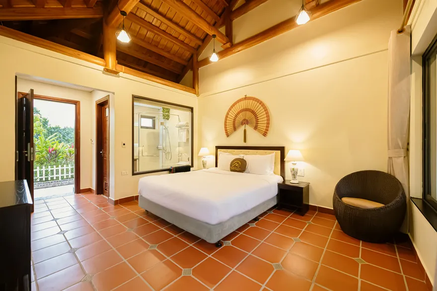 Để bảo vệ không gian xanh và phòng chống cháy nổ (do resort có nhiều nội thất tre, gỗ, mái ngói), tất cả các phòng nghỉ đều là phòng không hút thuốc. Du khách vui lòng sử dụng thuốc lá tại các khu vực không gian mở ngoài trời hoặc sân hiên riêng để không ảnh hưởng đến người xung quanh.