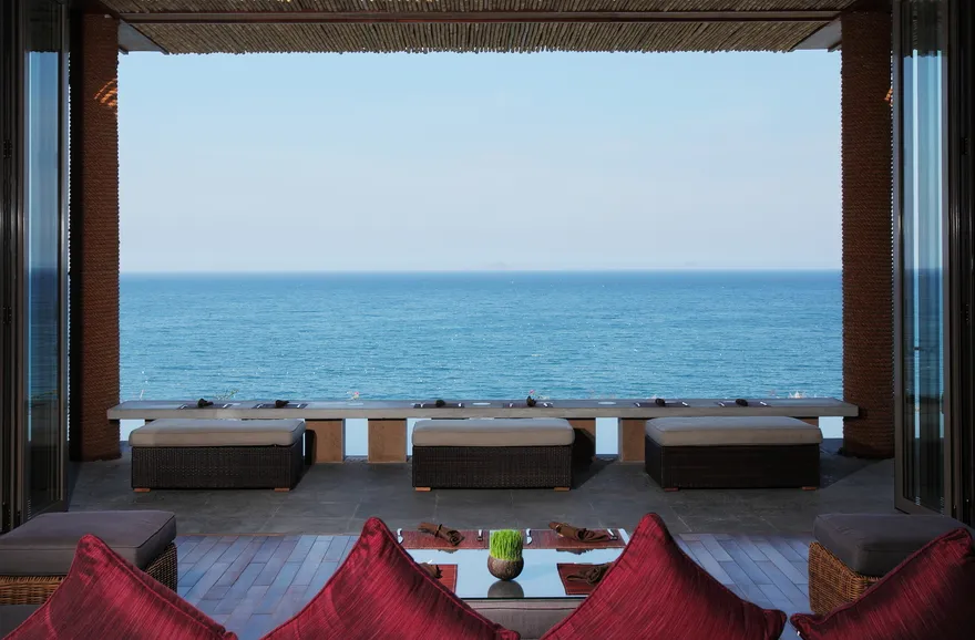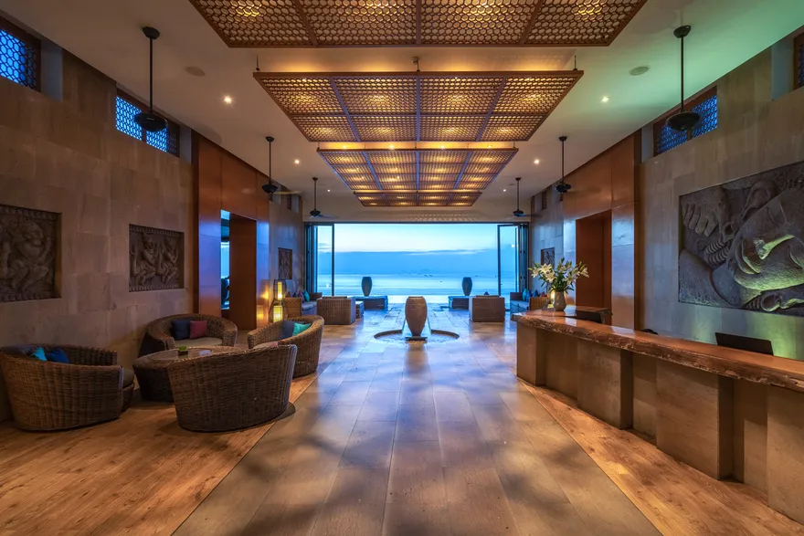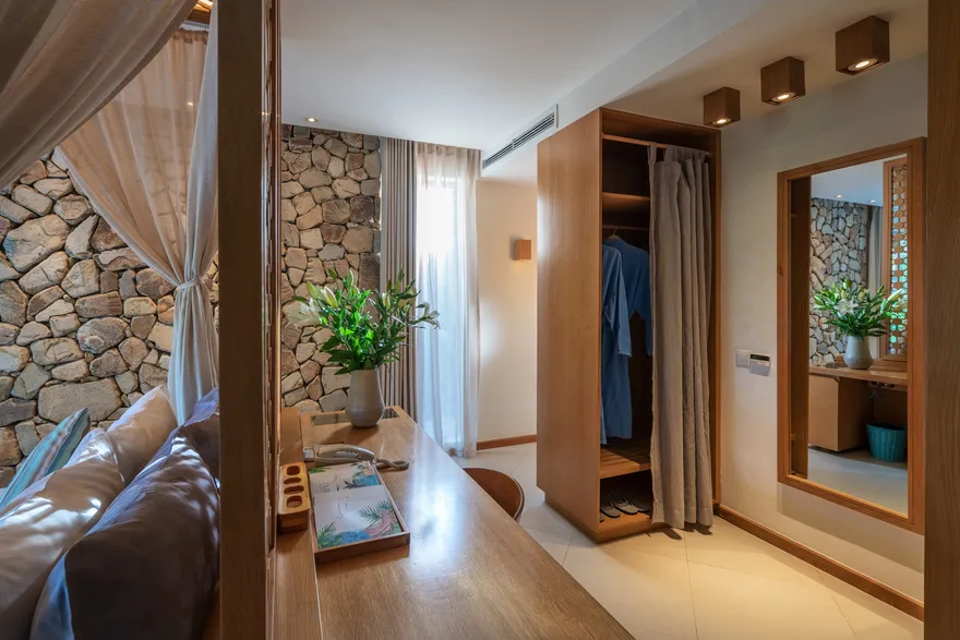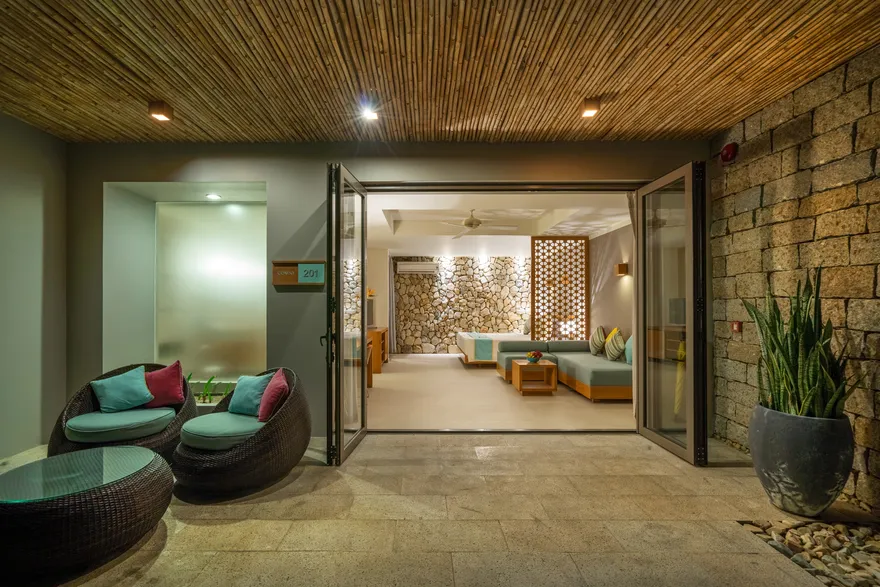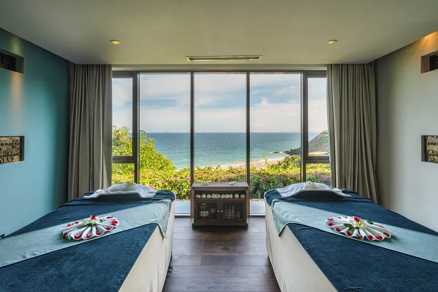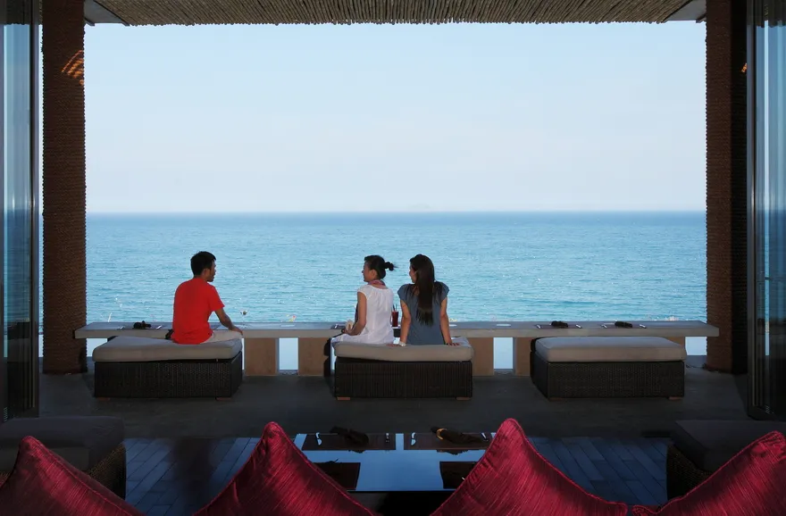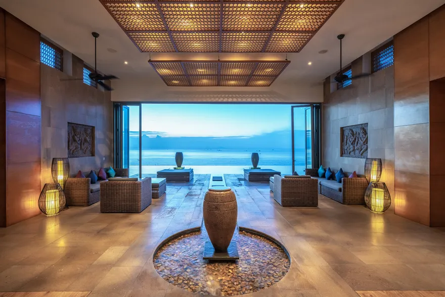Về vị trí, resort sở hữu một “tọa độ vàng” khi tọa lạc tại Bãi Đông, thuộc xã Cam Hải Đông, huyện Cam Lâm. Đây là một không gian độc bản, nơi khu nghỉ dưỡng nằm ẩn mình giữa những vách đá hùng vĩ và bờ cát mịn màng, tạo nên một ranh giới tự nhiên tách biệt hoàn toàn với sự náo nhiệt bên ngoài. Sự biệt lập này không chỉ mang lại vẻ đẹp hoang sơ mà còn giúp khách lưu trú tận hưởng không gian riêng tư tuyệt đối để tái tạo năng lượng. Để đảm bảo sự thuận tiện tối đa, resort vẫn cung cấp các giải pháp kết nối linh hoạt như dịch vụ xe buýt đưa đón miễn phí theo lịch trình cố định hàng ngày, giúp hành trình khám phá của du khách luôn được liền mạch và thoải mái.