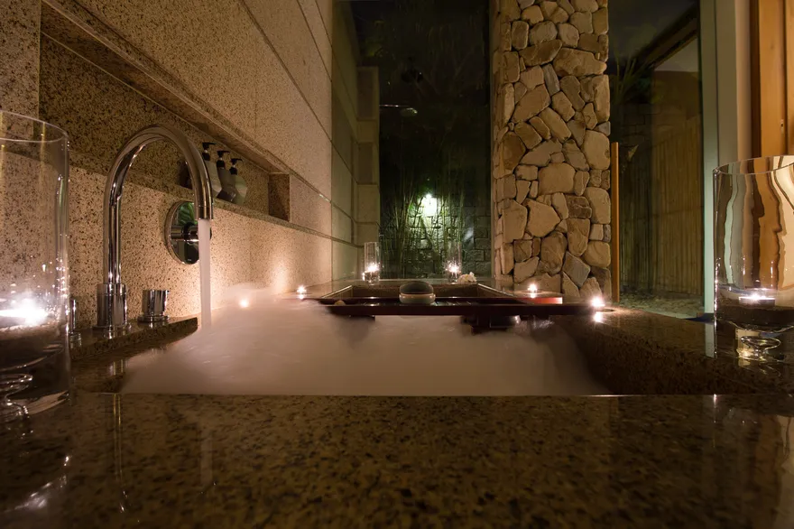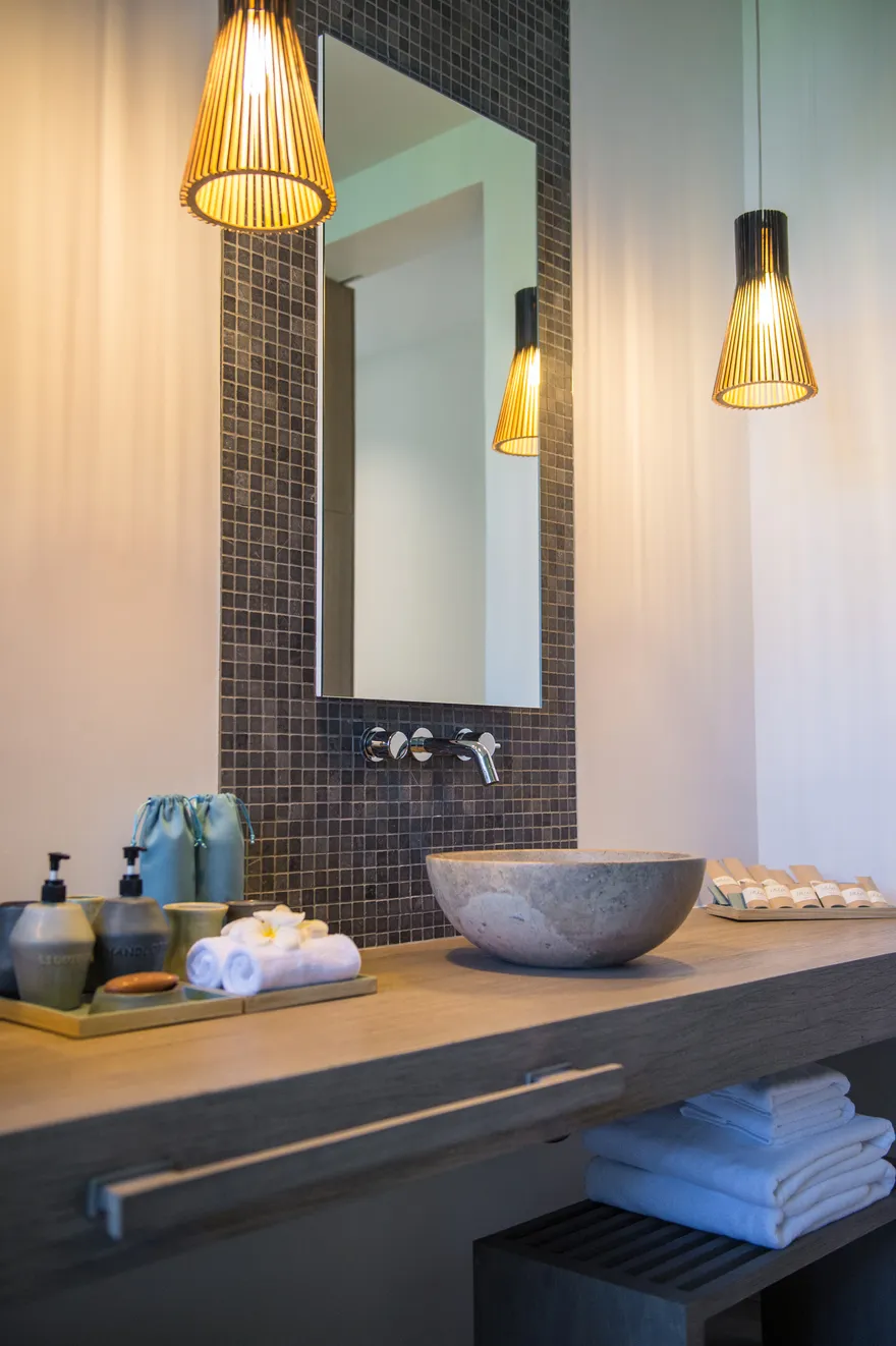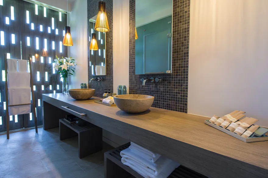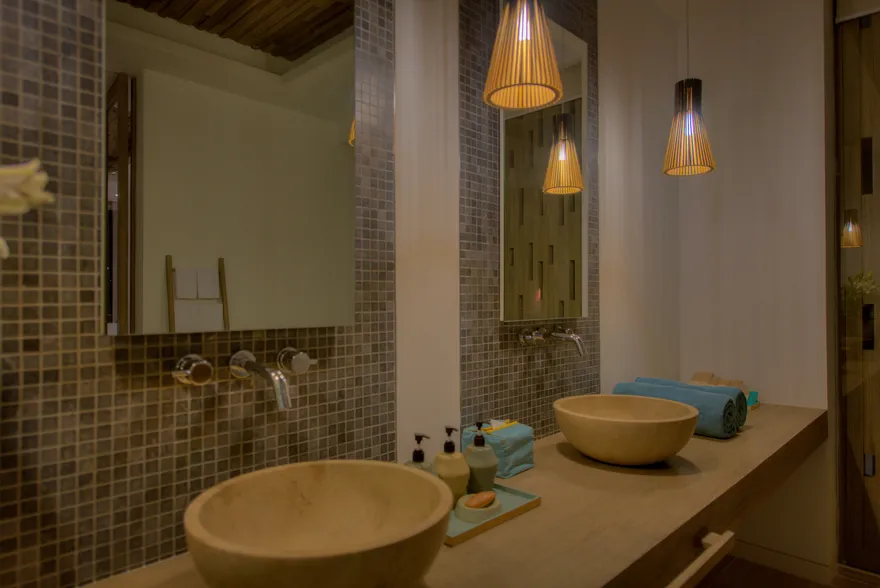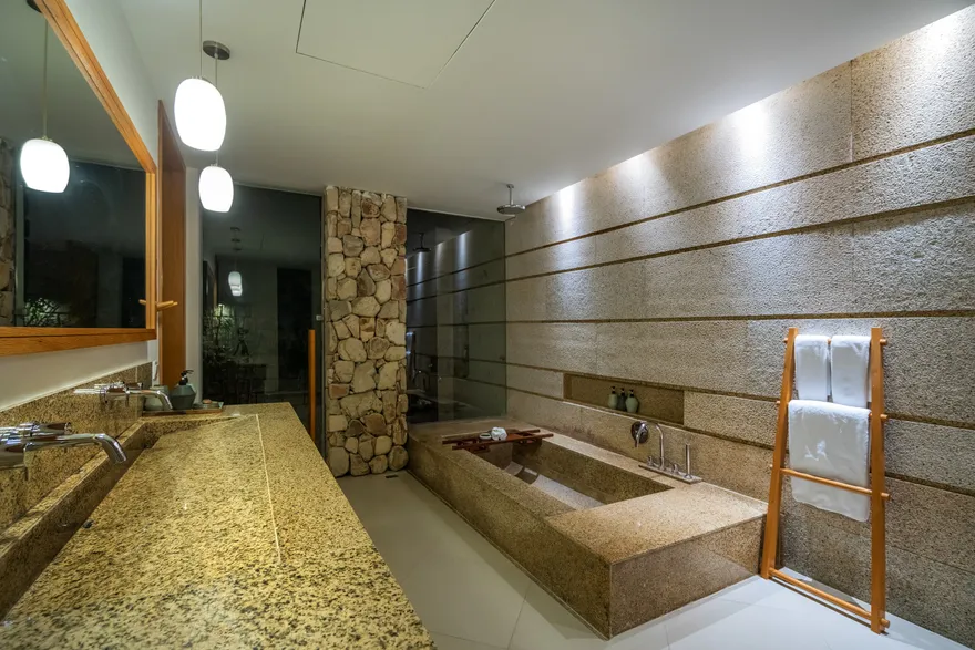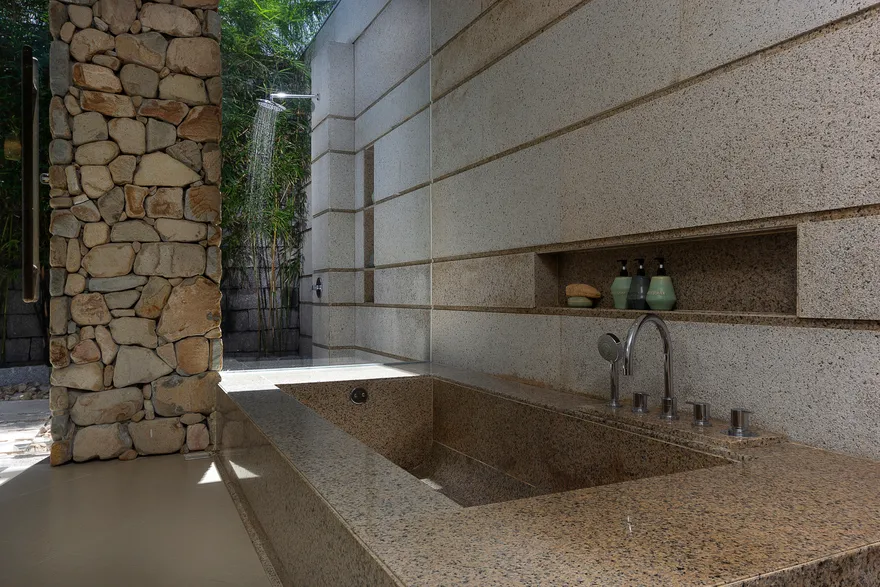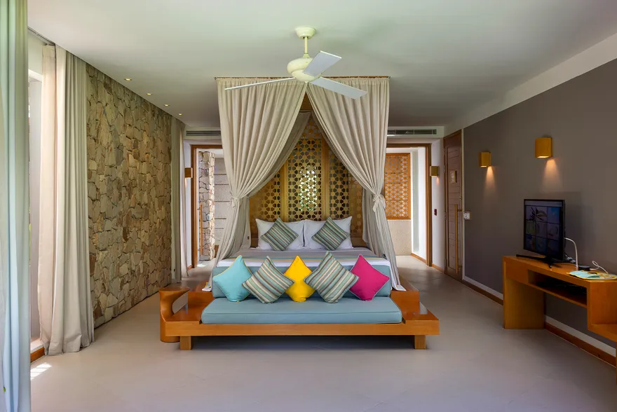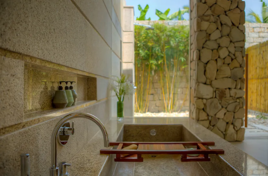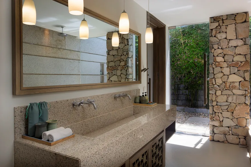 Các căn Garden và Ocean View Condo là lựa chọn lý tưởng cho những ai yêu thích sự tinh tế và tiện nghi chuẩn 5 sao. Điểm nhấn của hạng phòng này chính là thiết kế giường bốn trụ hiện đại mang phong cách hoàng gia và khu vực phòng tắm có vòi sen ngoài trời độc đáo, cho phép du khách tận hưởng sự tự do và hòa mình vào thiên nhiên ngay trong không gian riêng tư.