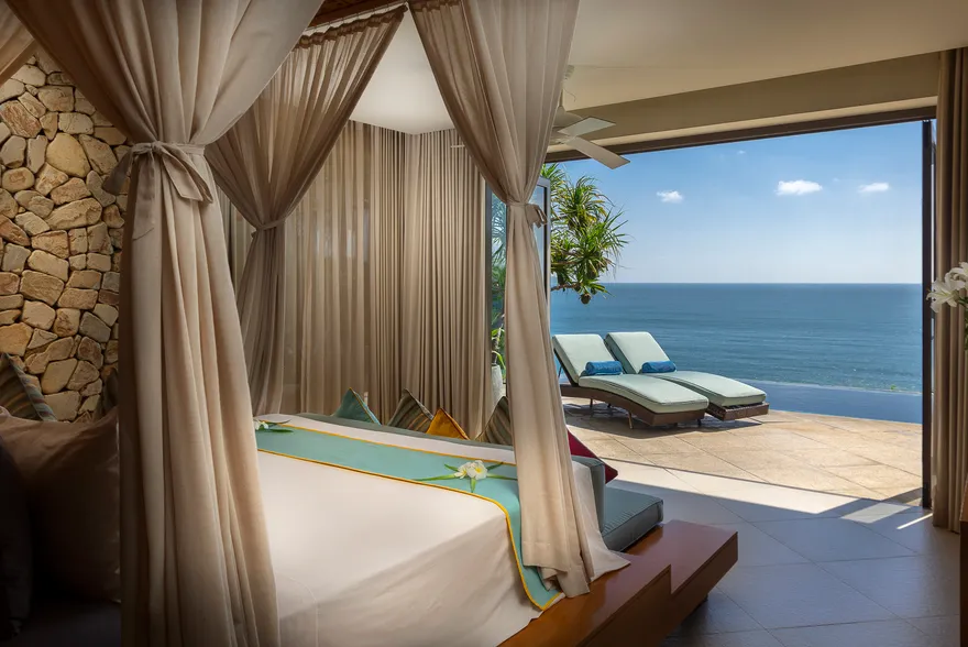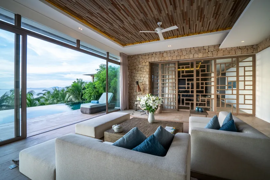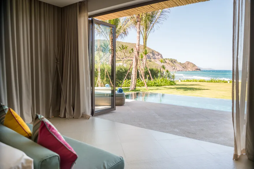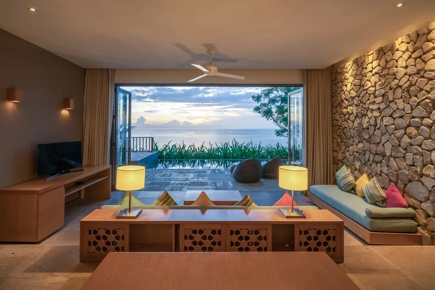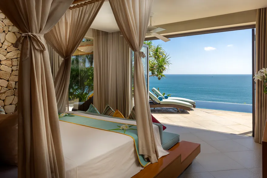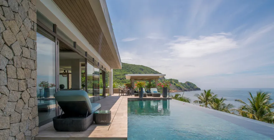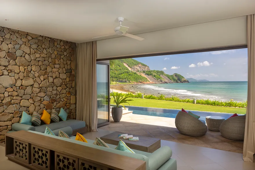 Đối với những vị khách tìm kiếm trải nghiệm độc bản, Cliff Villa (Biệt thự vách đá) đại diện cho một tầm cao mới của sự sang trọng khi tọa lạc trên đỉnh vách đá cao hướng thẳng ra vịnh biển. Tại đây, du khách có thể phóng tầm mắt chiêm ngưỡng tầm nhìn toàn cảnh 180 độ ra Biển Đông hùng vĩ và thư giãn trong hồ bơi tràn bờ riêng, tạo nên một không gian thư thái và tĩnh lặng tuyệt đối.