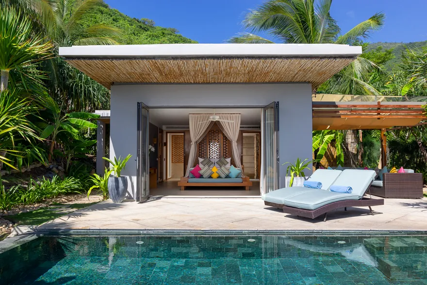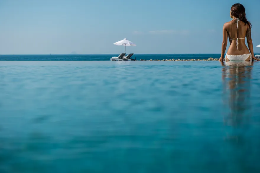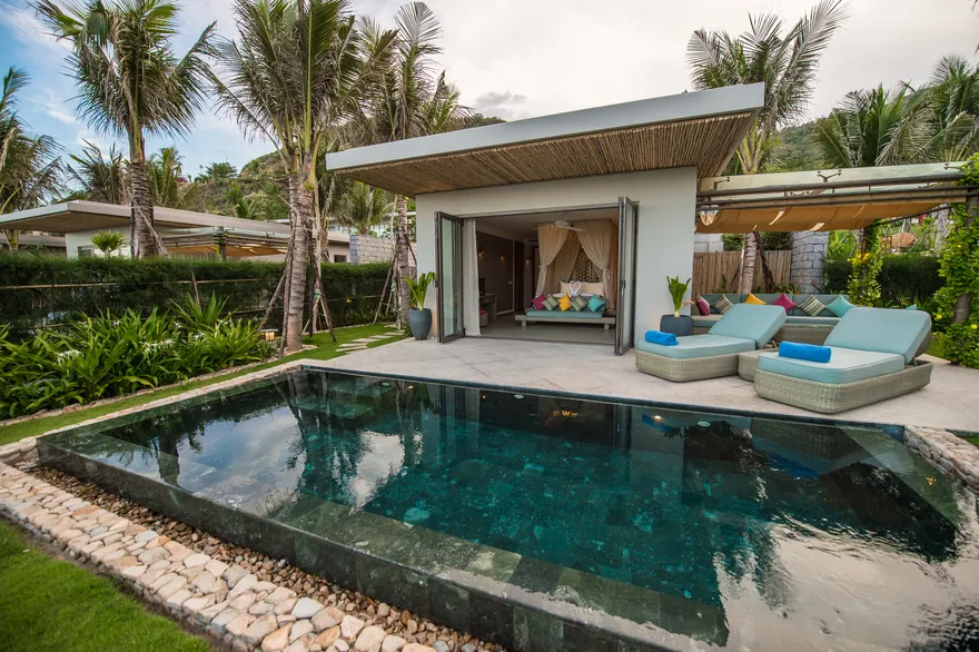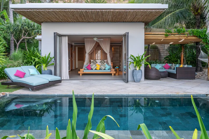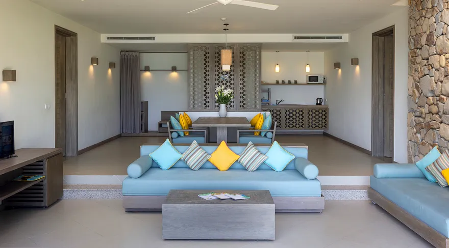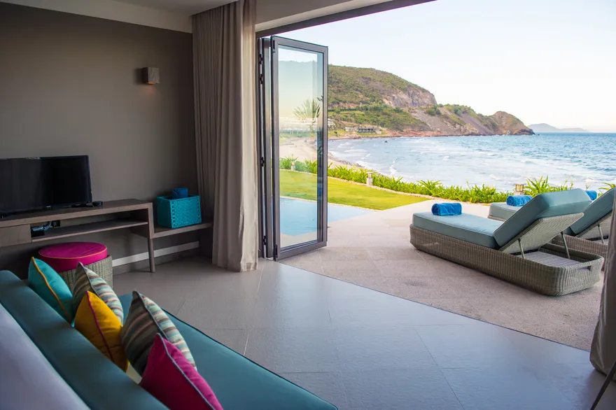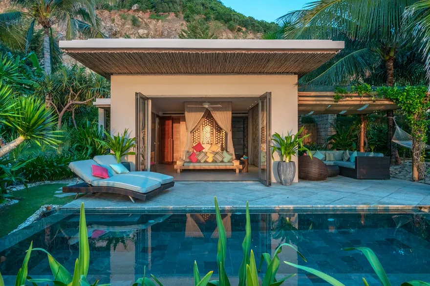 Đối với những vị khách tìm kiếm trải nghiệm độc bản, Cliff Villa (Biệt thự vách đá) đại diện cho một tầm cao mới của sự sang trọng khi tọa lạc trên đỉnh vách đá cao hướng thẳng ra vịnh biển. Tại đây, du khách có thể phóng tầm mắt chiêm ngưỡng tầm nhìn toàn cảnh 180 độ ra Biển Đông hùng vĩ và thư giãn trong hồ bơi tràn bờ riêng, tạo nên một không gian thư thái và tĩnh lặng tuyệt đối.