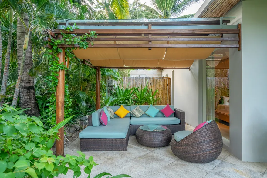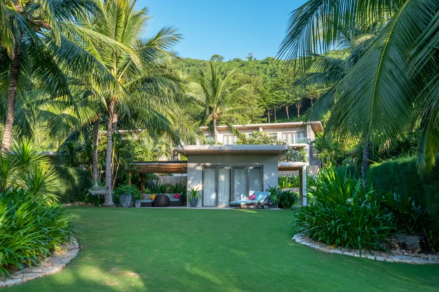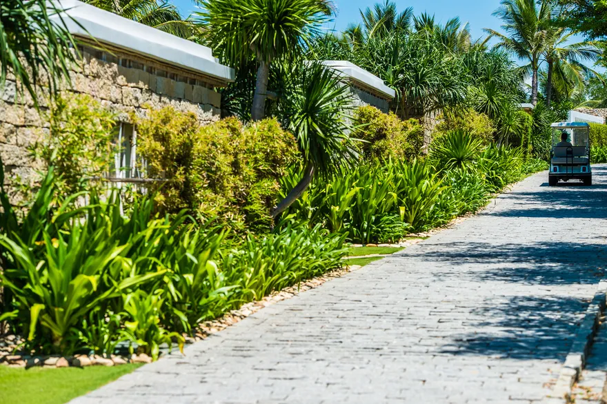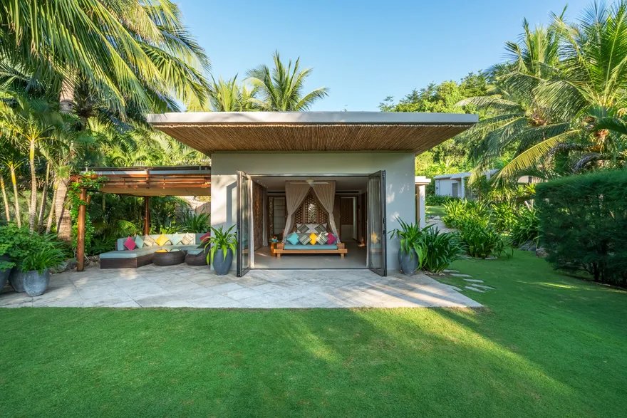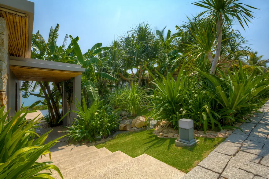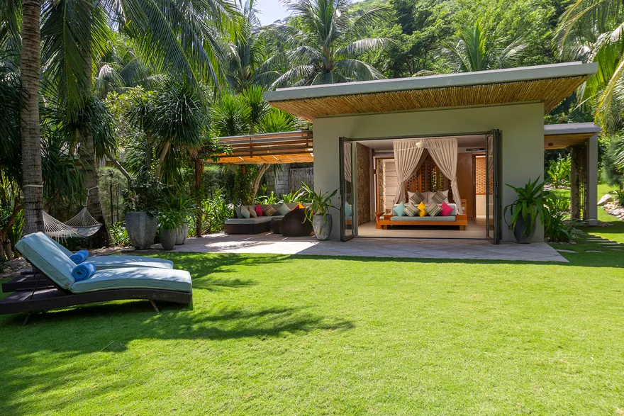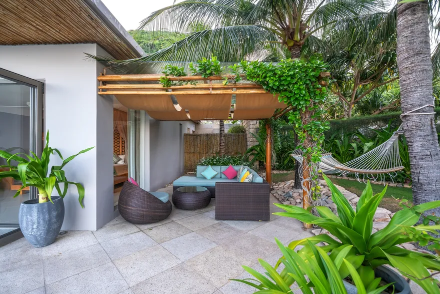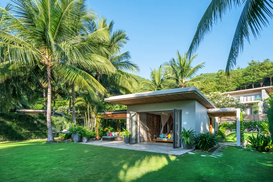 • Vườn nhiệt đới; nằm ẩn mình giữa các hàng dừa và hoa sứ.