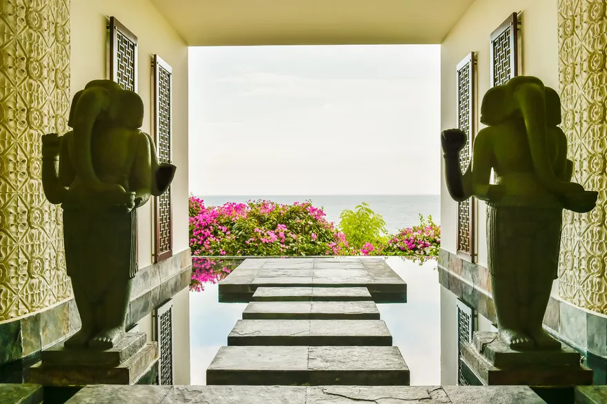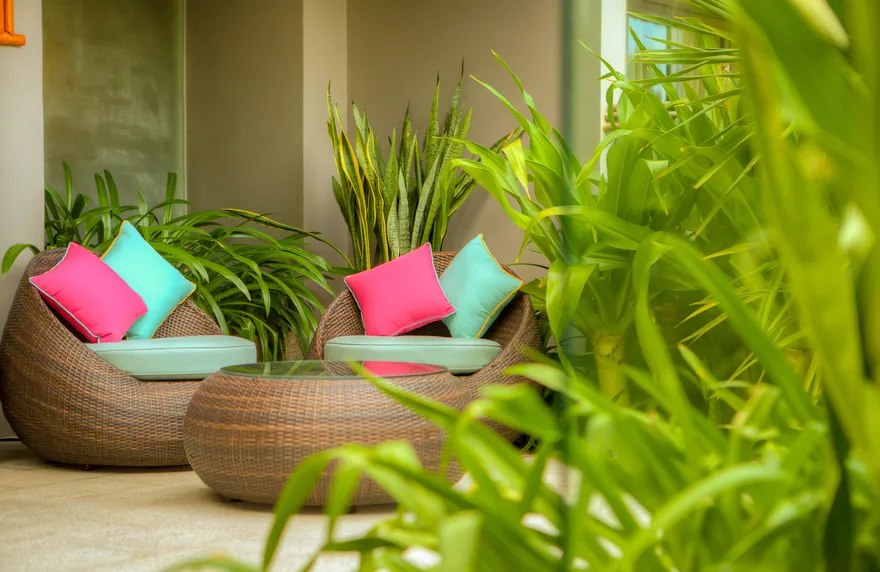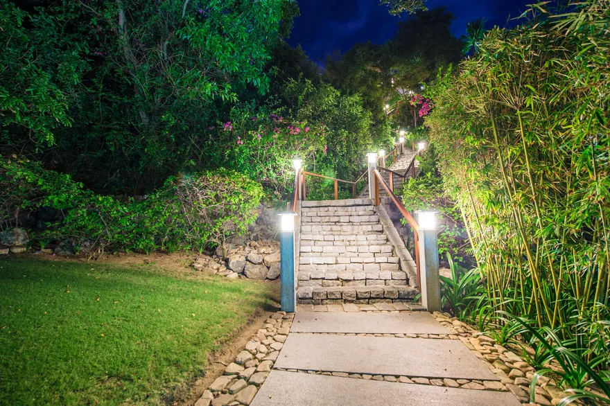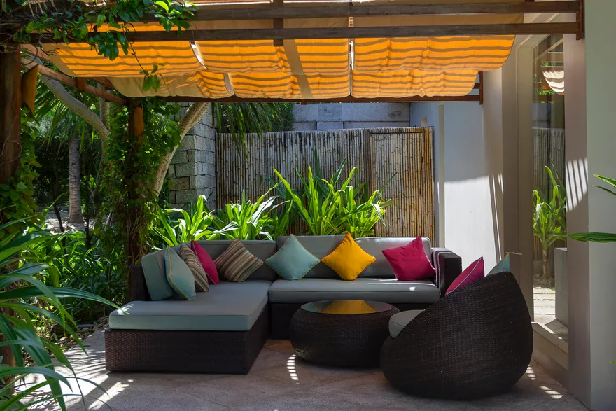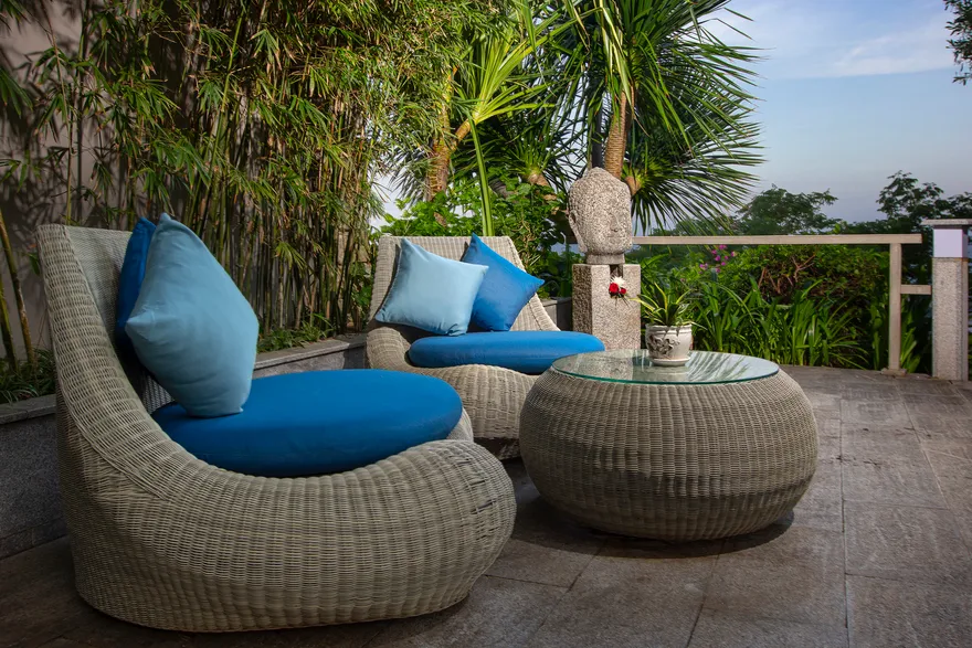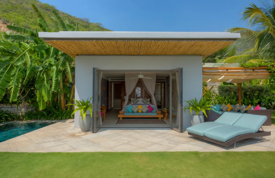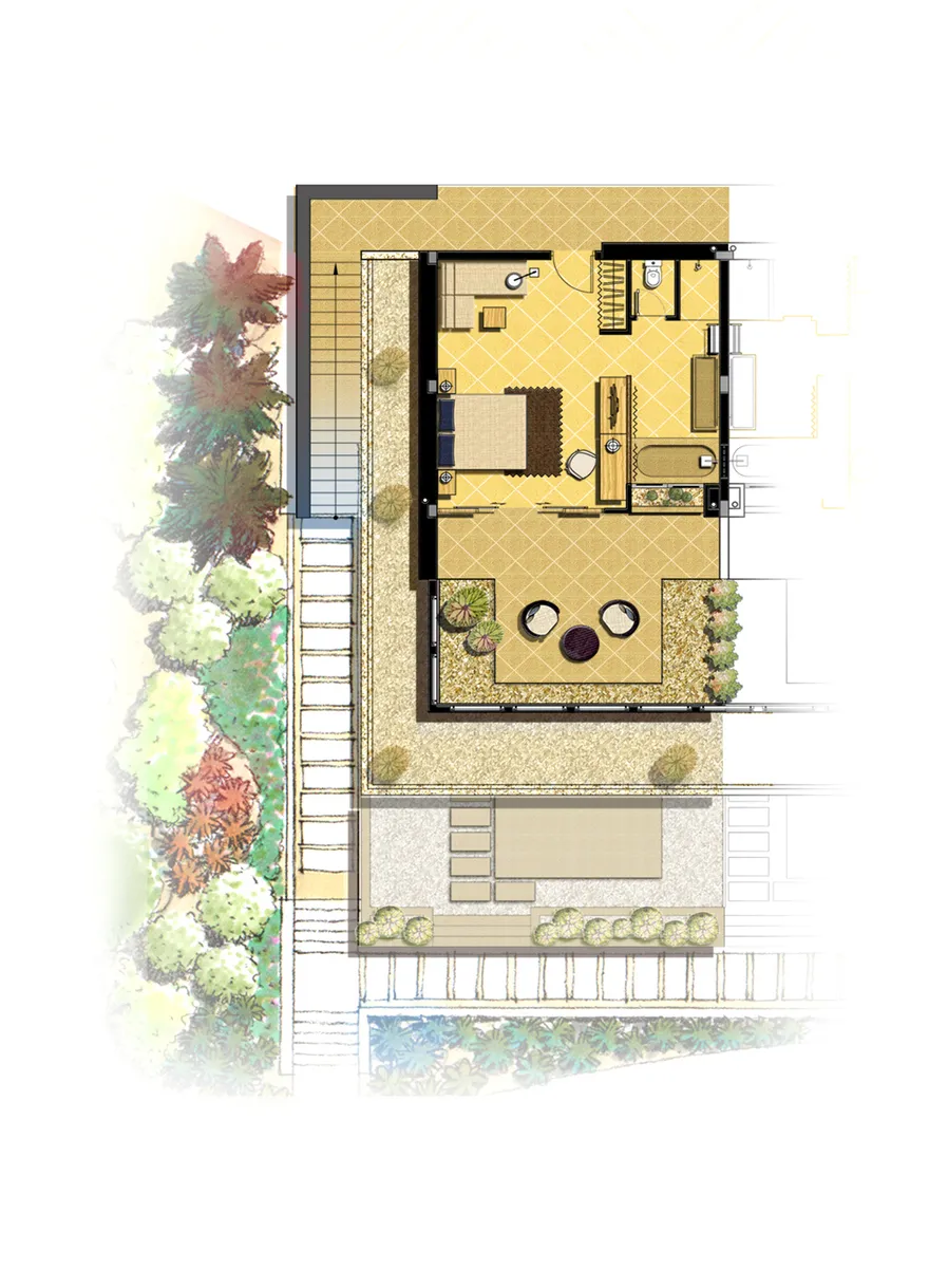• Vườn nhiệt đới; nằm ẩn mình giữa các hàng dừa và hoa sứ.