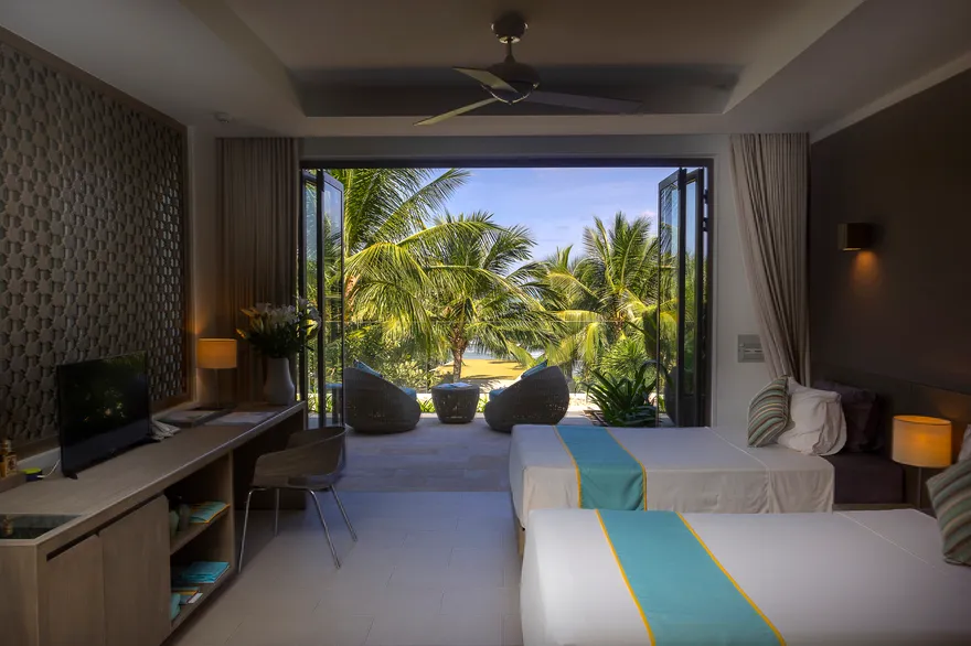 • Tiêu chuẩn lưu trú: Phòng 1 phòng ngủ dành cho tối đa 2 người lớn và 1 trẻ em dưới 12 tuổi. Riêng căn hộ gia đình Ocean View Two-bedroom phù hợp cho 2 người lớn và 2 trẻ em dưới 12 tuổi.