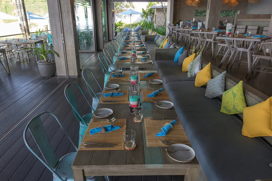 Cuối cùng, trái tim của sự kết nối xã hội tại resort chính là Mojito’s Lounge & Bar, nằm ở vị trí cao với tầm nhìn bao quát toàn cảnh đại dương. Đây là nơi duy nhất du khách có thể thưởng thức những ly cocktail sáng tạo được pha chế từ mía tươi – linh hồn của thương hiệu Mia – trong khi ngắm nhìn ánh hoàng hôn rực rỡ buông xuống vịnh biển. Thực đơn tại đây thiên về phong cách tapas Á-Âu kết hợp cùng các loại bia thủ công địa phương, tạo nên một bầu không khí ấm cúng và đầy cảm hứng cho những buổi tối thư giãn.