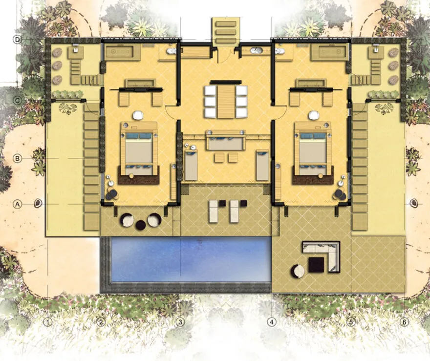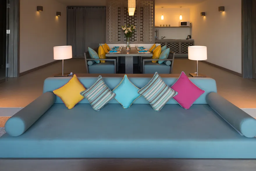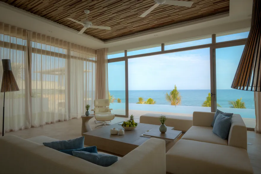 Đỉnh cao của bộ sưu tập lưu trú tại Mia chính là các căn Mia Luxury Five-Bedroom Residence. Những dinh thự này được xây dựng với cấu trúc ba tầng kết nối, tích hợp hồ bơi vô cực riêng cùng không gian sinh hoạt chung rộng lớn sát mép nước. Với sức chứa lên đến 14 người, bao gồm cả người lớn và trẻ em, đây là lựa chọn hoàn hảo cho các đoàn khách lớn hoặc gia đình đa thế hệ muốn tận hưởng một kỳ nghỉ sum vầy đẳng cấp.
