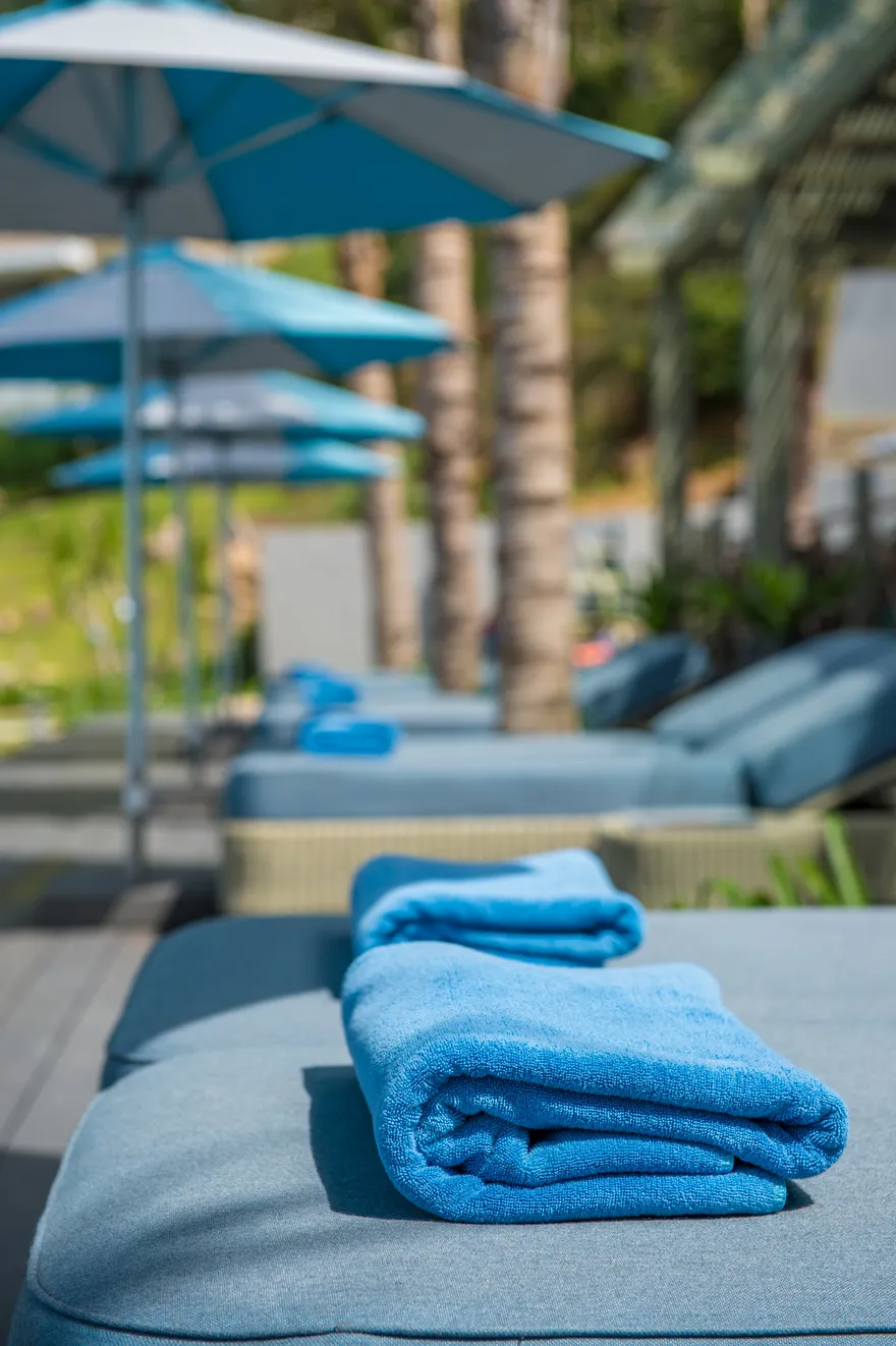 Đối với những du khách yêu thích vận động, khu nghỉ dưỡng trang bị hệ thống sân tennis và sân bóng rổ đạt tiêu chuẩn quốc tế. Điểm nhấn không thể bỏ qua là hai hồ bơi vô cực rộng lớn với tầm nhìn panorama ra đại dương, bên cạnh hồ bơi dành riêng cho trẻ em, tạo nên không gian giải trí dưới nước hoàn hảo cho cả gia đình.
