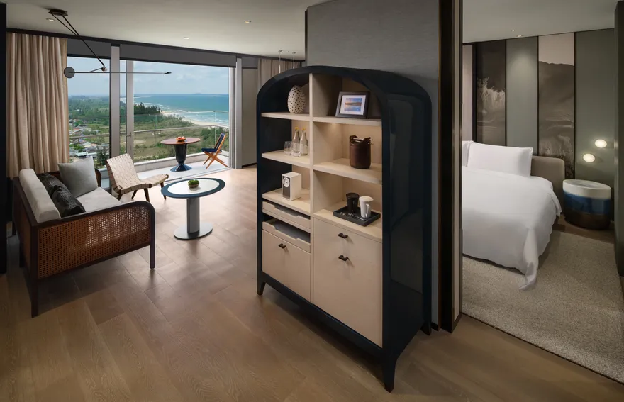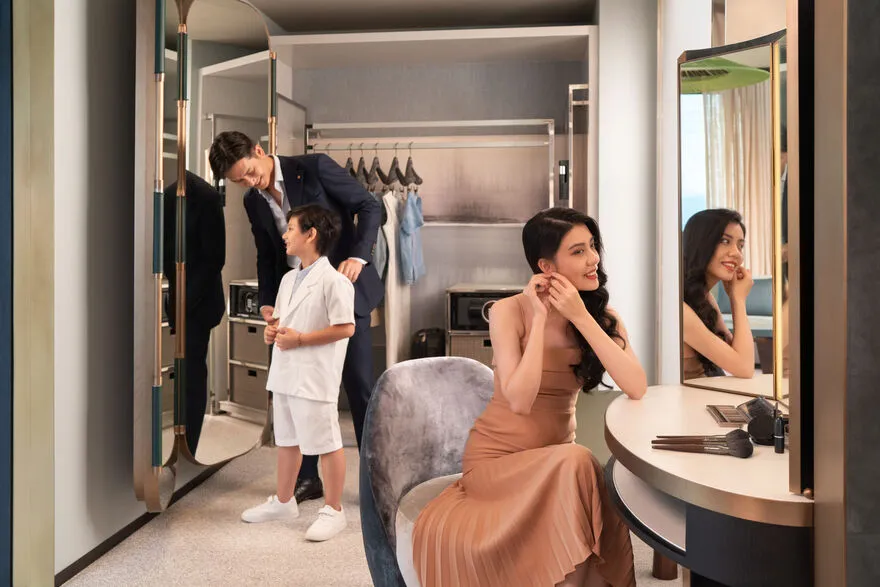 Bước vào không gian lưu trú, bạn sẽ cảm nhận được ngôn ngữ của sự “buông bỏ” qua kiến trúc Coastal Calm. Với diện tích phòng tối thiểu từ 50 $m^2$ – con số hào phóng vượt xa tiêu chuẩn thông thường – mỗi căn phòng đều là một khoảng không để tâm trí được bay bổng. Những vật liệu bản địa như nệm xơ dừa hay gối hữu cơ không chỉ là câu chuyện về tính bền vững, mà còn là sự thấu hiểu sâu sắc về nhu cầu được vỗ về trong giấc ngủ của giới thượng lưu. Đặc biệt, sự tinh tế còn chạm đến cảm xúc của những vị khách nhỏ tuổi qua dịch vụ lều trong phòng, biến kỳ nghỉ thành một chuyến phiêu lưu kỳ thú, giúp cha mẹ thực sự có được sự thảnh thơi khi con trẻ được hạnh phúc trong “vương quốc” riêng của chúng.