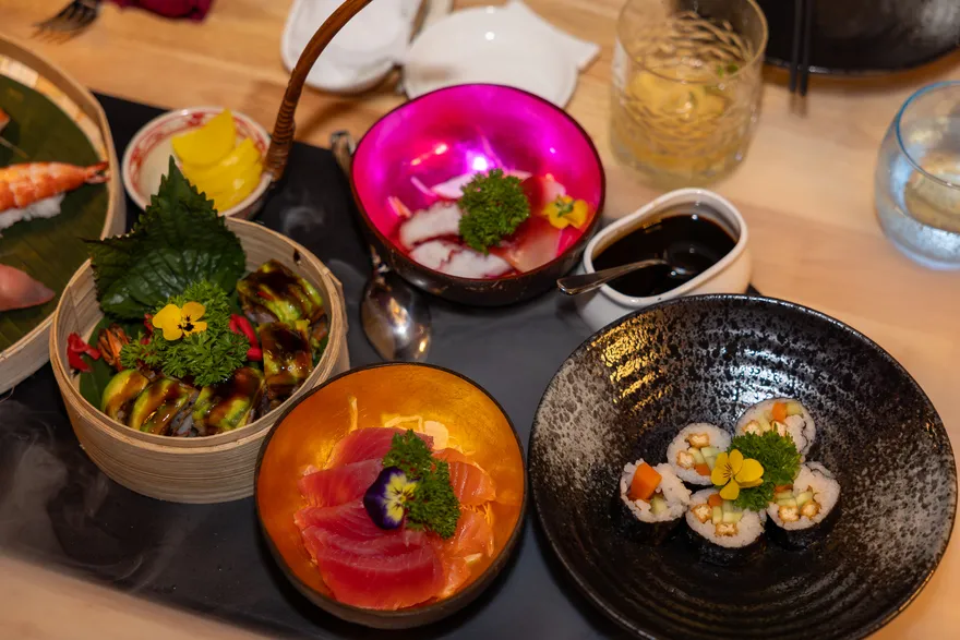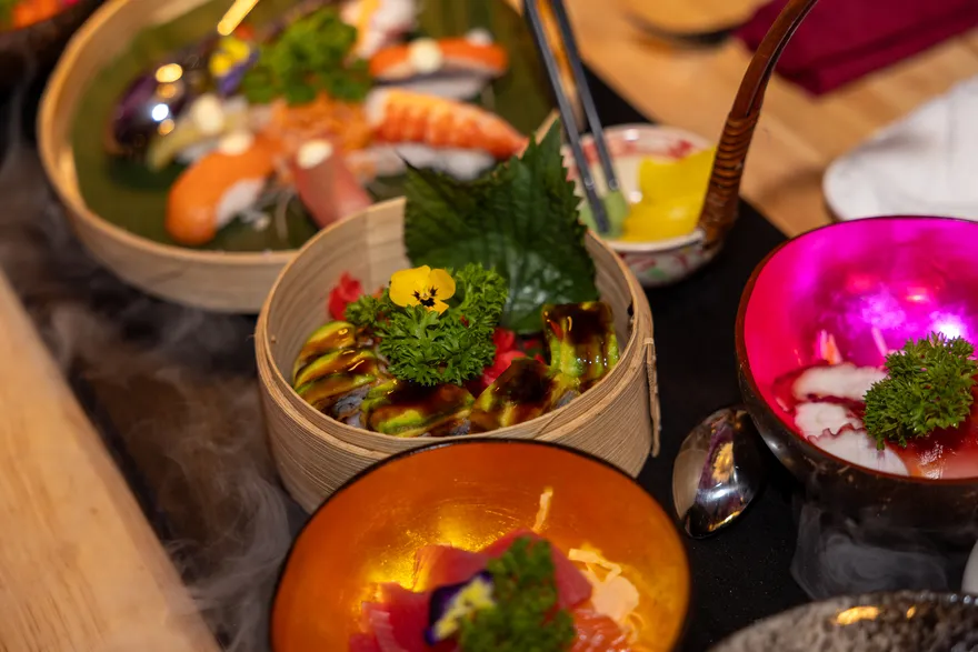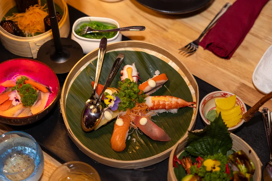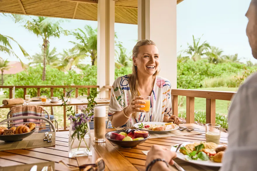 Trải nghiệm ẩm thực là một hành trình nuôi dưỡng cả thể chất lẫn tinh thần thông qua các gói dịch vụ linh hoạt như All-Inclusive hoặc Full Board, cho phép du khách thưởng thức trọn vẹn tinh hoa ẩm thực kèm đồ uống miễn phí trong các bữa ăn chính. Triết lý WellFood và khái niệm BalAyur được áp dụng triệt để, chú trọng vào chế độ ăn cân bằng, ít béo và giàu protein để hỗ trợ phục hồi sức khỏe theo nguyên lý Ayurveda. Bên cạnh các bữa tiệc buffet đa dạng, hệ thống thực đơn gọi món mang đến sự lựa chọn phong phú từ những bữa cơm nhà dân dã với cá bống mú kho tộ, cá tầm nướng muối ớt đến các đặc sản vùng miền như lẩu cá linh bông điên điển hay chả cá Lã Vọng. Đối với những bữa tiệc tối sang trọng, thực đơn cao cấp với bào ngư, tôm hùm nướng phô mai và thăn bò Úc nướng sẽ mang đến những trải nghiệm vị giác đầy ấn tượng.