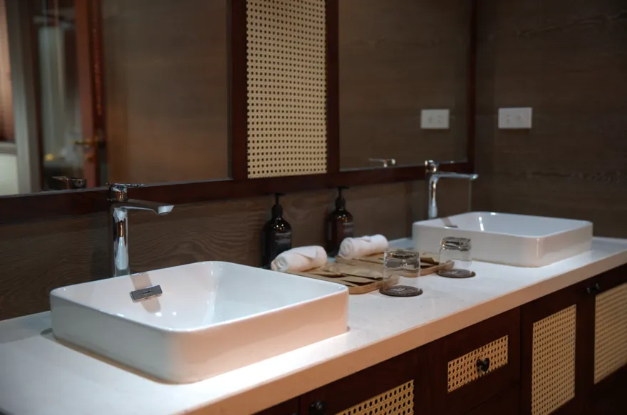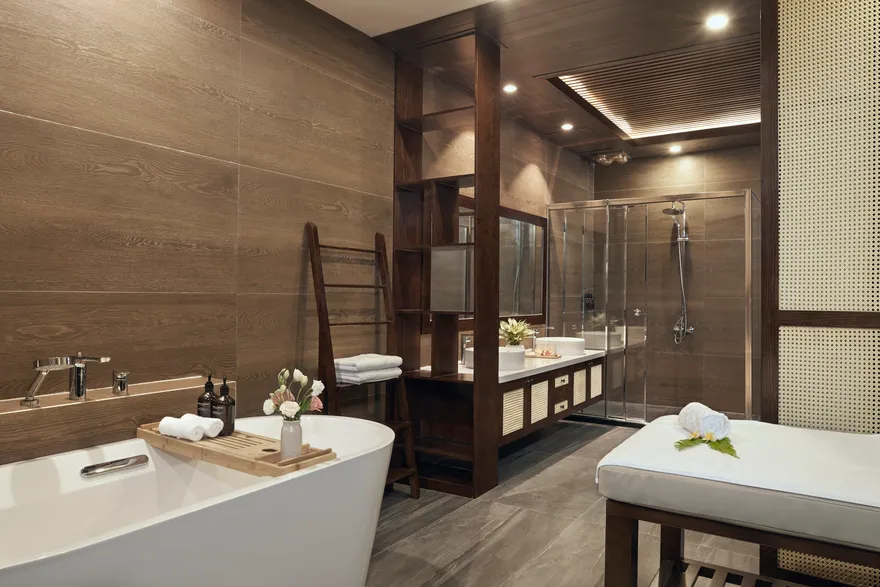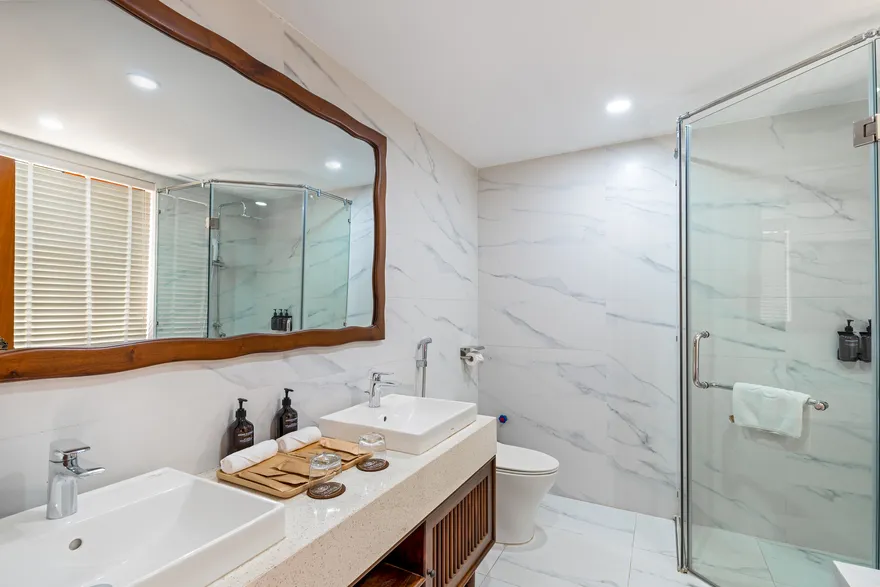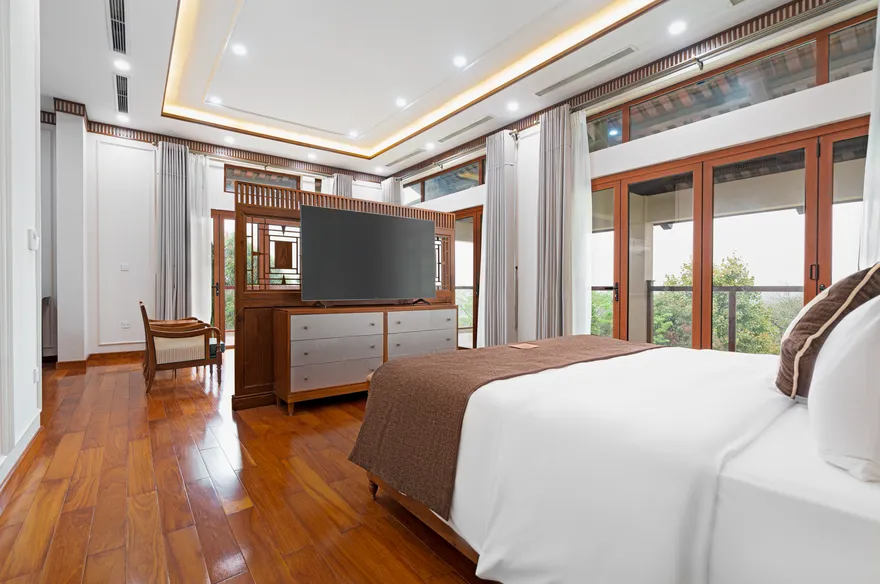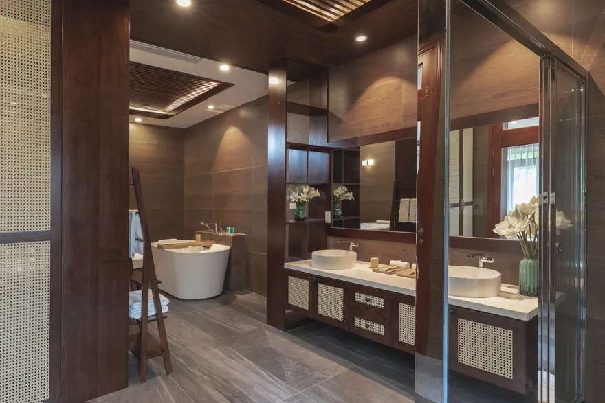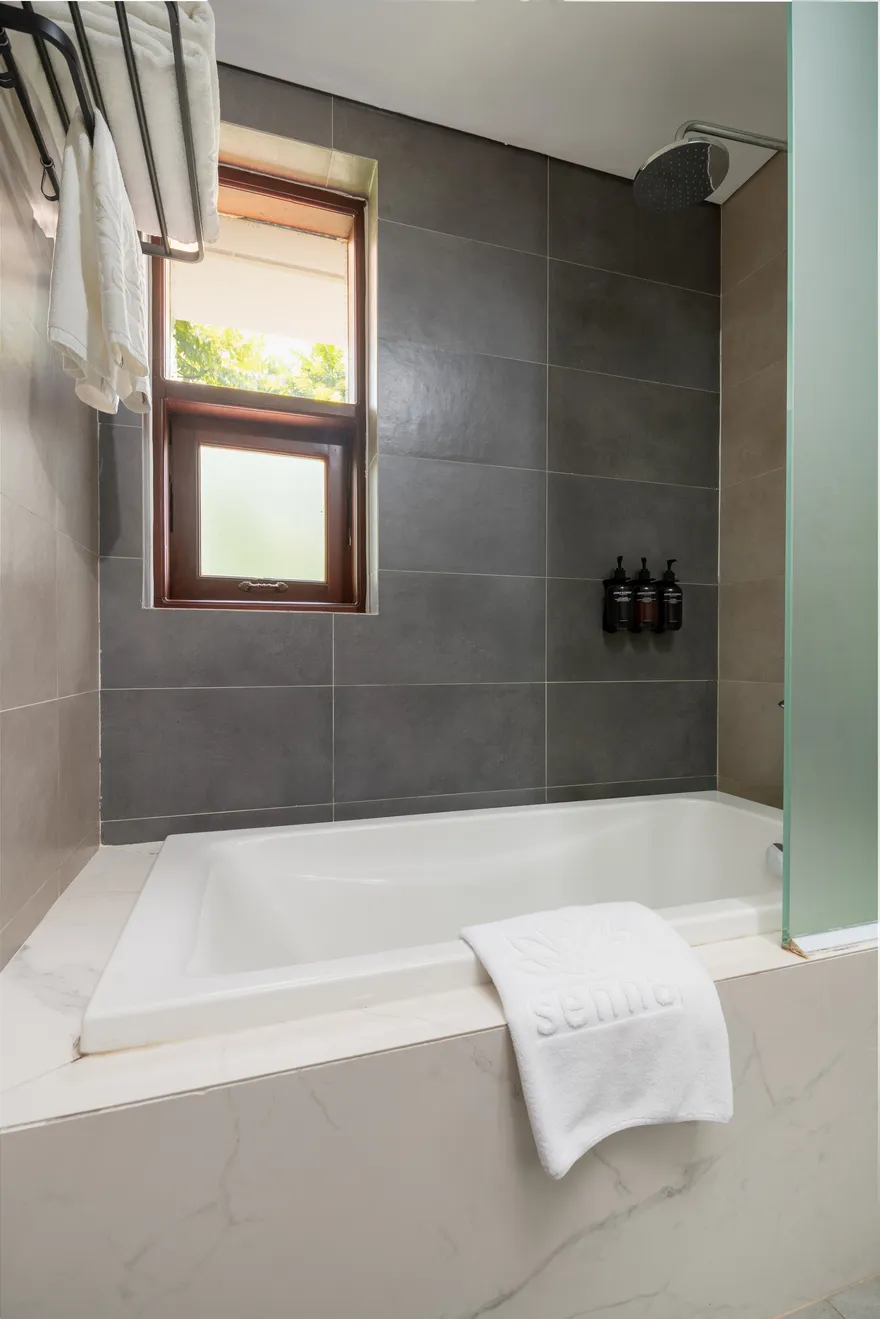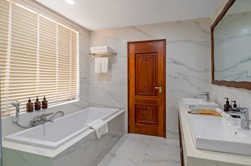 • Phòng rộng rãi, bồn tắm nằm sang trọng, mang lại sự thư giãn và thanh lọc.