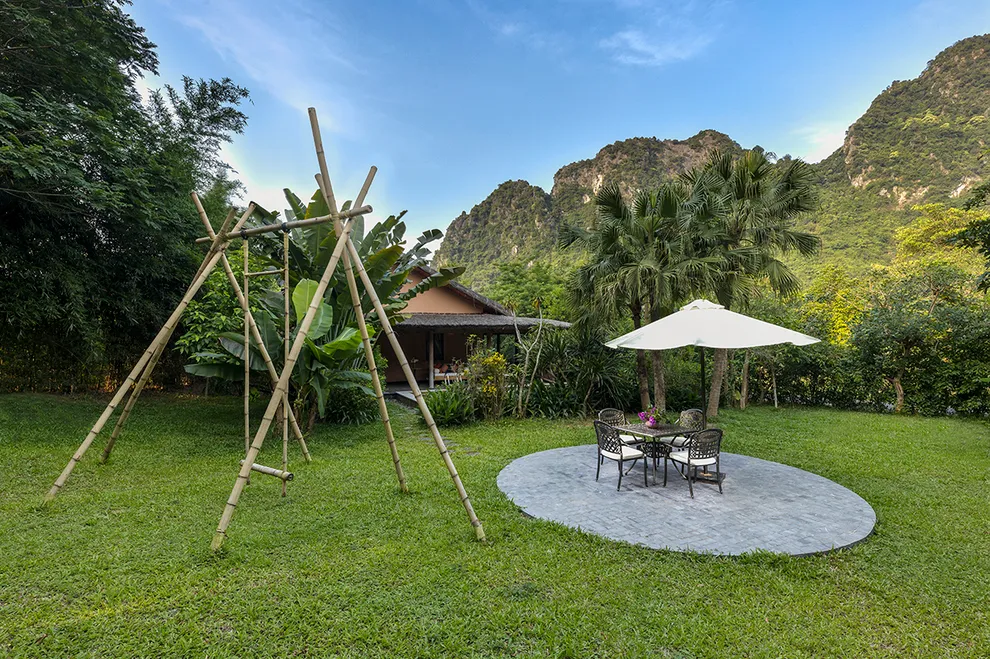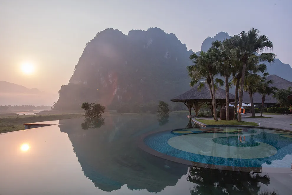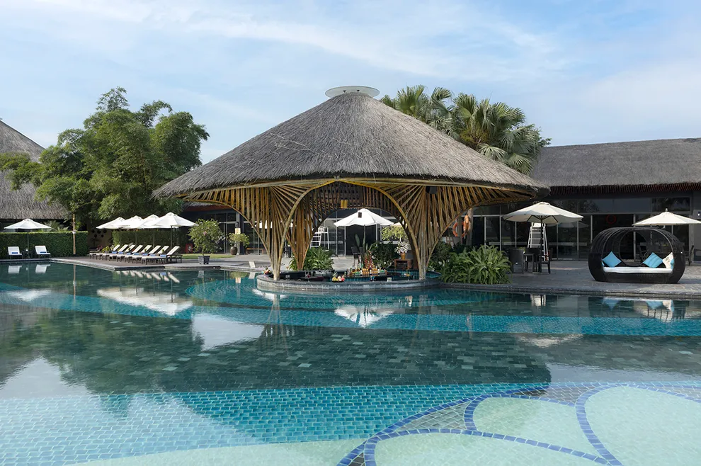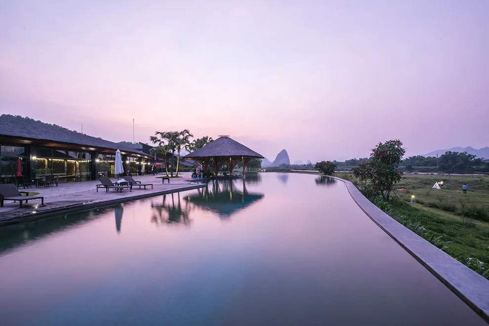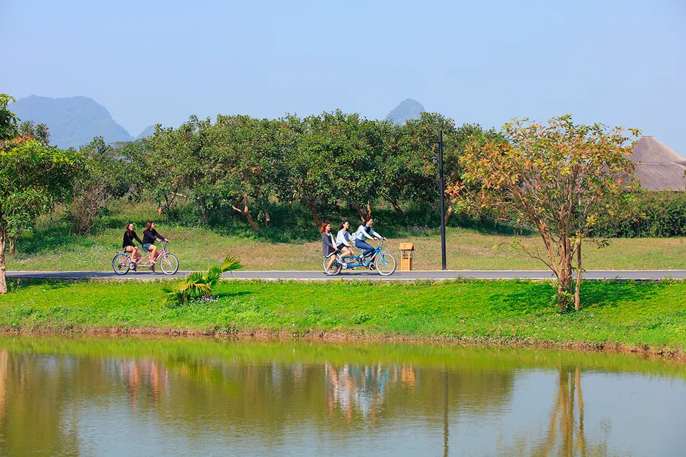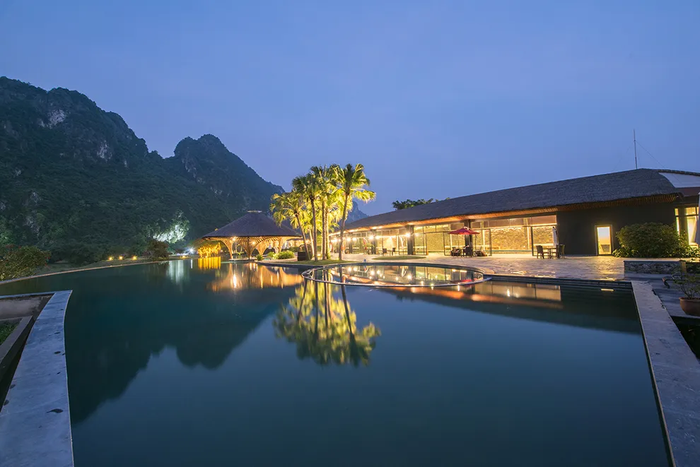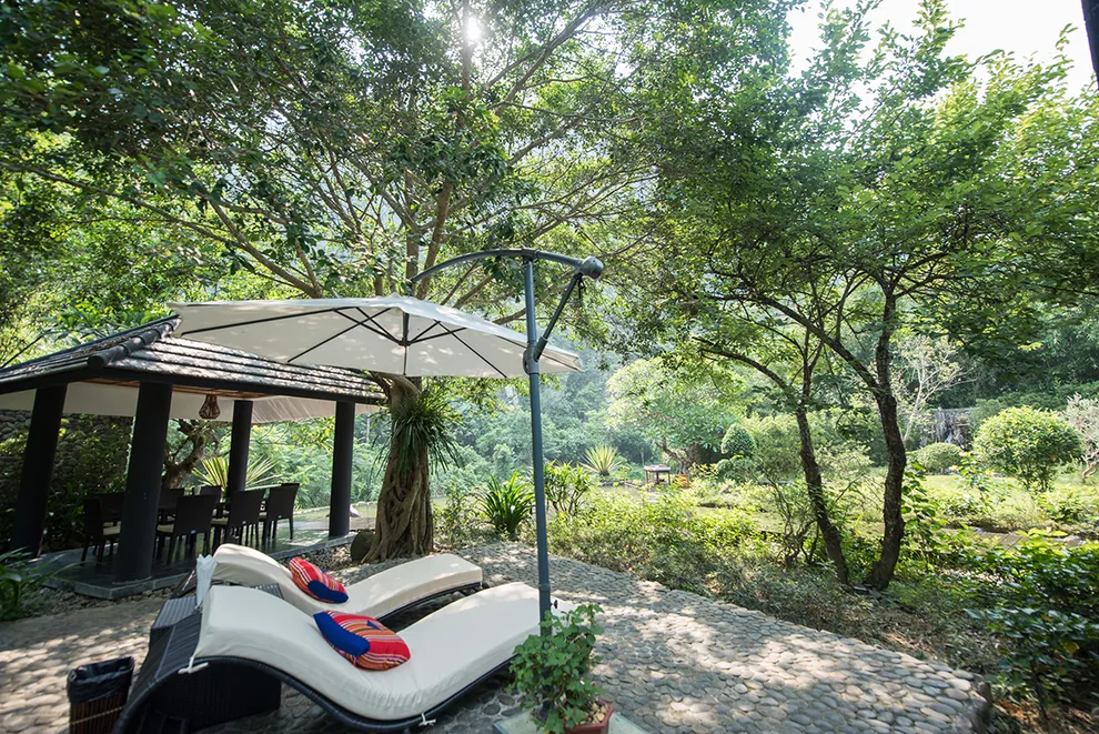 Trải nghiệm thay thế: Du khách có thể tận hưởng dòng sông Bôi hiền hòa chảy bao quanh khu nghỉ dưỡng hoặc trải nghiệm hệ thống bể bơi vô cực và hồ câu cá trong khuôn viên 30 hecta của resort.