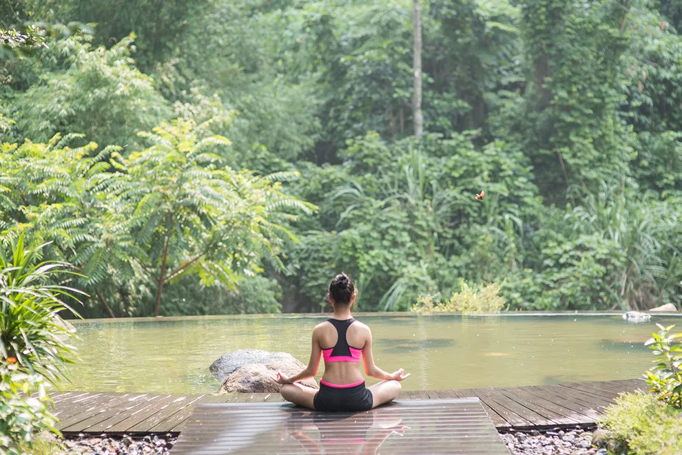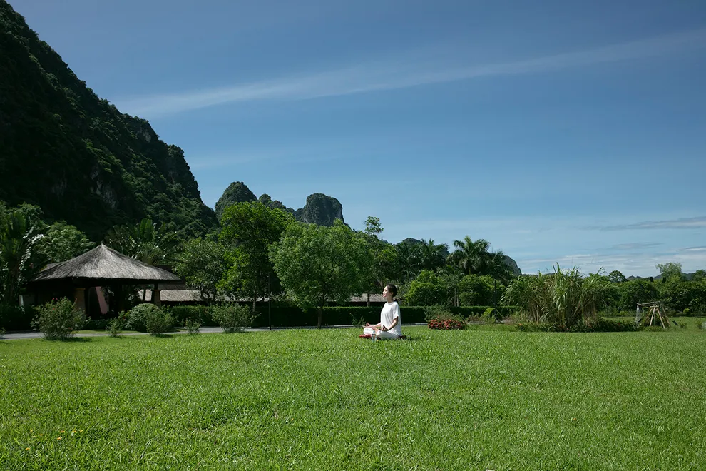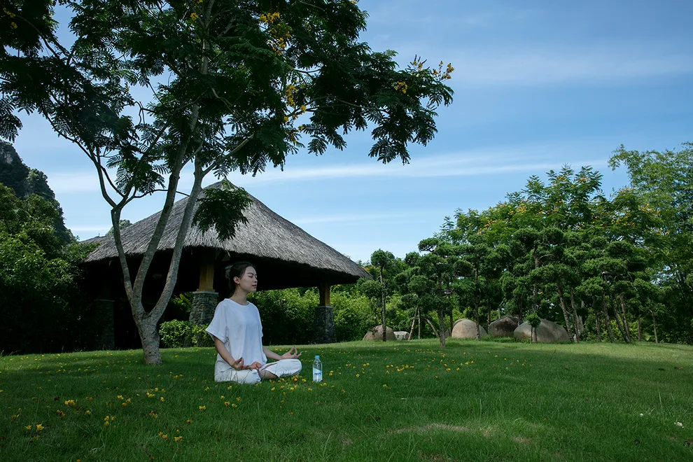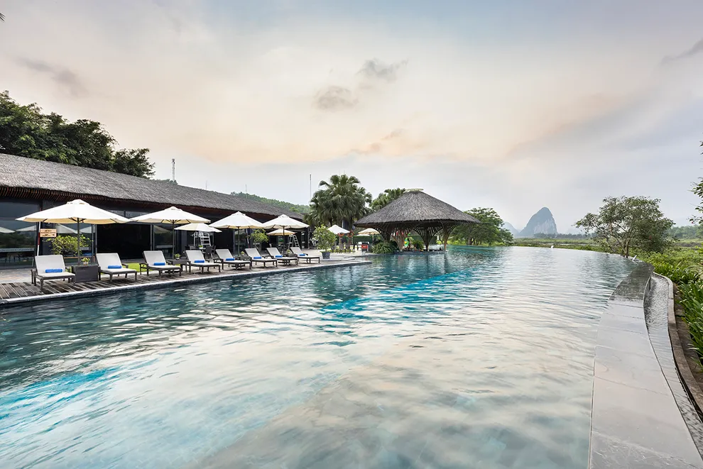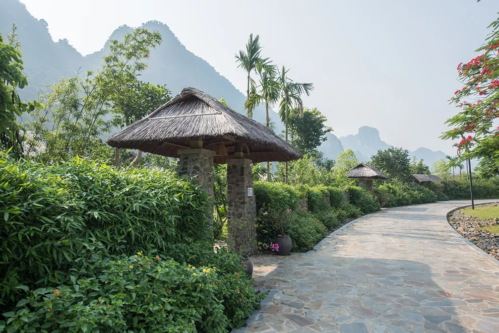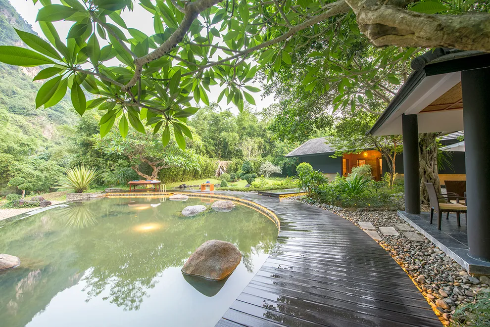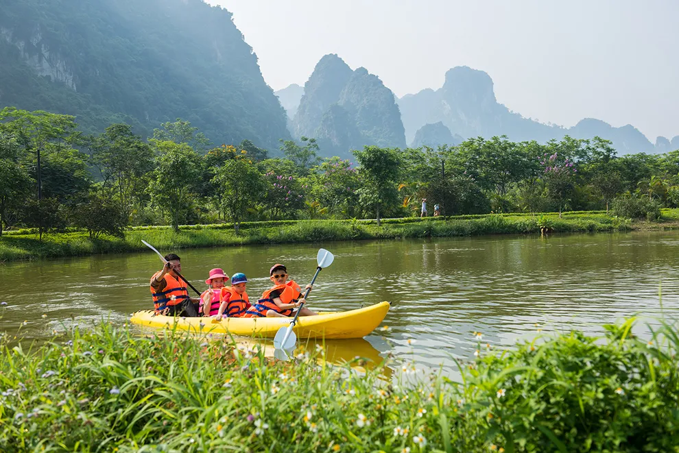 Trải nghiệm thay thế: Du khách có thể tận hưởng dòng sông Bôi hiền hòa chảy bao quanh khu nghỉ dưỡng hoặc trải nghiệm hệ thống bể bơi vô cực và hồ câu cá trong khuôn viên 30 hecta của resort.