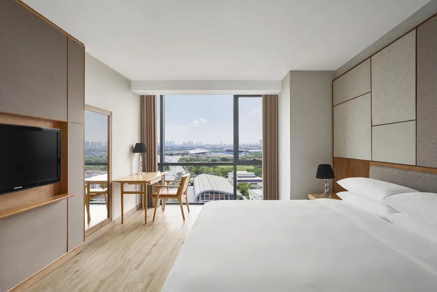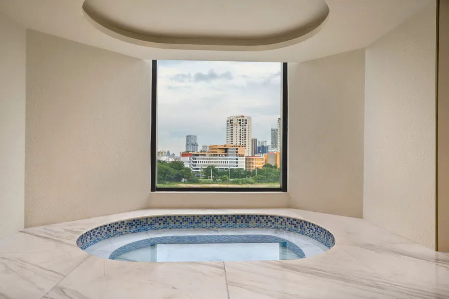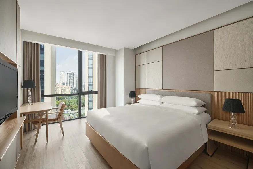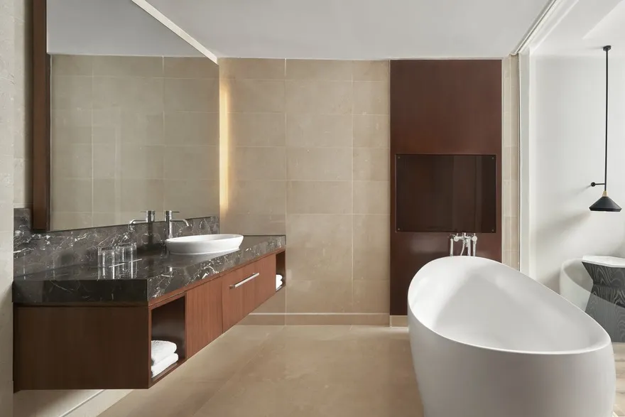 Điểm nhấn làm nên sự độc bản của không gian này chính là ngôn ngữ thiết kế Art Deco phương Tây mạnh mẽ hòa quyện cùng nét thanh lịch, hoài cổ của kiến trúc Đông Dương (Indochine). Sự đầu tư khắt khe vào hạ tầng phản ánh đẳng cấp vượt trội với hệ thống kính Low-E 3 lớp của Eurowindow giúp cách âm, cách nhiệt và chống tia UV hiệu quả. Bên cạnh đó, thiết kế cửa lùa Panorama mở ra tầm nhìn toàn cảnh tuyệt đẹp ra khu vực phía Tây năng động, đảm bảo tối ưu hóa ánh sáng tự nhiên cho từng không gian nghỉ dưỡng.