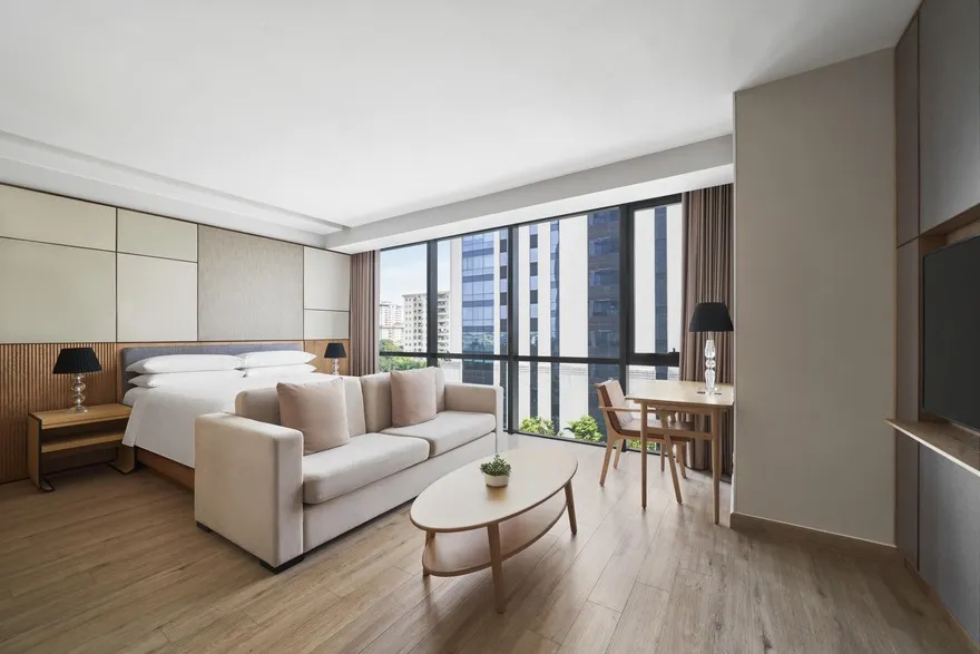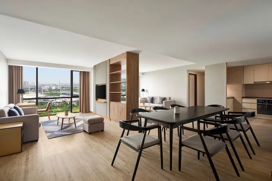 Không gian nghỉ dưỡng được phân bổ đa dạng từ các căn Studio thiết kế thông minh tối ưu cho khách công tác đến các căn hộ 2-3 phòng ngủ rộng lớn có logia toàn cảnh và phòng làm việc riêng biệt. Tiêu chuẩn trang thiết bị tại Swiss-Belresidences Hanoi đạt mức “Full-option” với các thương hiệu danh tiếng như Hafele, Villeroy & Boch và Siemens. Mỗi căn hộ đều được trang bị sẵn tivi 63 inch, máy giặt, máy sấy, tủ lạnh và đầy đủ thiết bị nhà bếp hiện đại, đi kèm dịch vụ dọn phòng hàng ngày chuyên nghiệp. Đặc biệt, khách sạn căn hộ này còn mang lại đặc quyền hiếm có với cam kết 02 vị trí đỗ ô tô cho mỗi căn hộ, giải quyết triệt để bài toán khan hiếm chỗ đỗ xe tại trung tâm quận Cầu Giấy hiện nay.