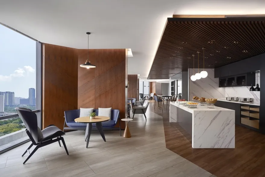 Không gian tiếp khách sang trọng: Bạn có thể sử dụng khu vực Sip Lounge hoặc Sky Bar trên tầng thượng để gặp gỡ đối tác trong không gian đẳng cấp với tầm nhìn bao quát thành phố.