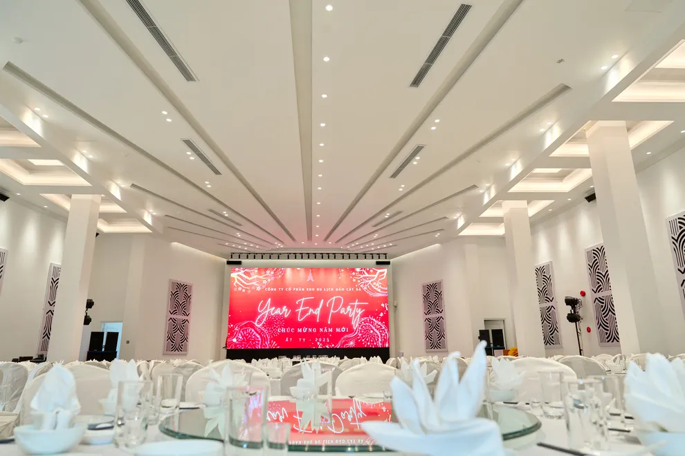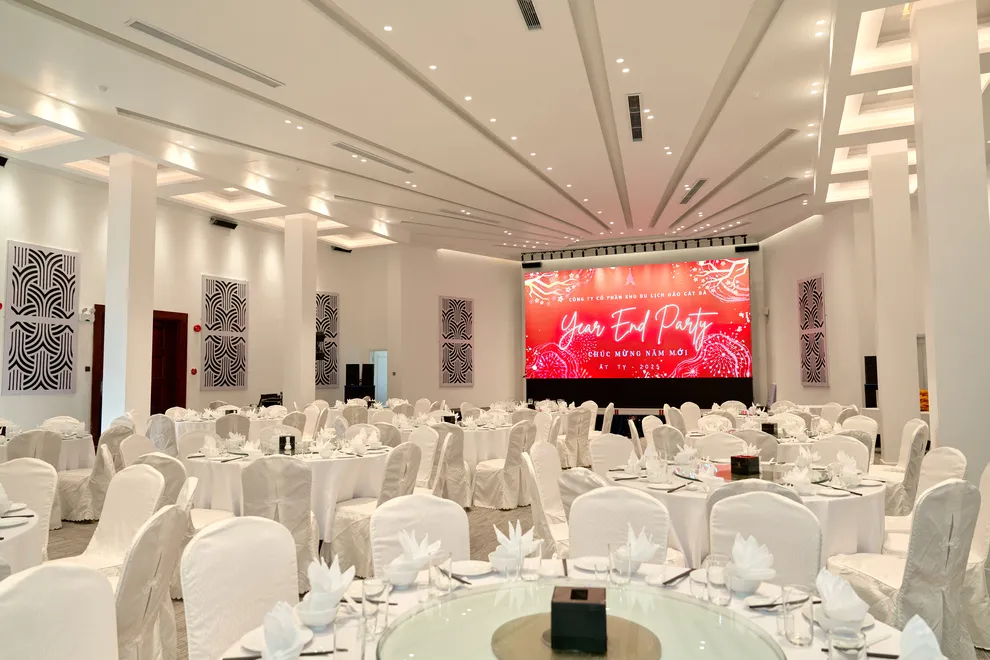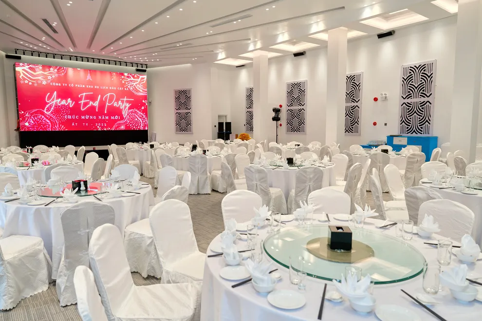 Điểm sáng rực rỡ nhất trong hành trình trải nghiệm tại đây chính là thiên đường ẩm thực đa dạng, xóa bỏ định kiến “ăn trong resort thì đắt”. Ngay tại nhà hàng Seashore và khu vực The Terrace sát biển, đại tiệc Buffet BBQ (giá từ 500.000 VNĐ) luôn sẵn sàng với quầy nướng trực tiếp (Live station) phục vụ hàu sữa mỡ hành, tôm thái chua cay và mực ống nguyên con nóng hổi. Sự linh hoạt trong thực đơn cũng là một điểm cộng lớn: từ những set cơm đoàn “ngon – bổ – rẻ” chỉ 250.000 VNĐ cho sinh viên, đến những bữa tiệc Fine Dining đẳng cấp 600.000 – 800.000 VNĐ với cao lương mỹ vị như súp bào ngư cua, tu hài nướng hay đặc sản dê núi và sứa đỏ Cát Bà.