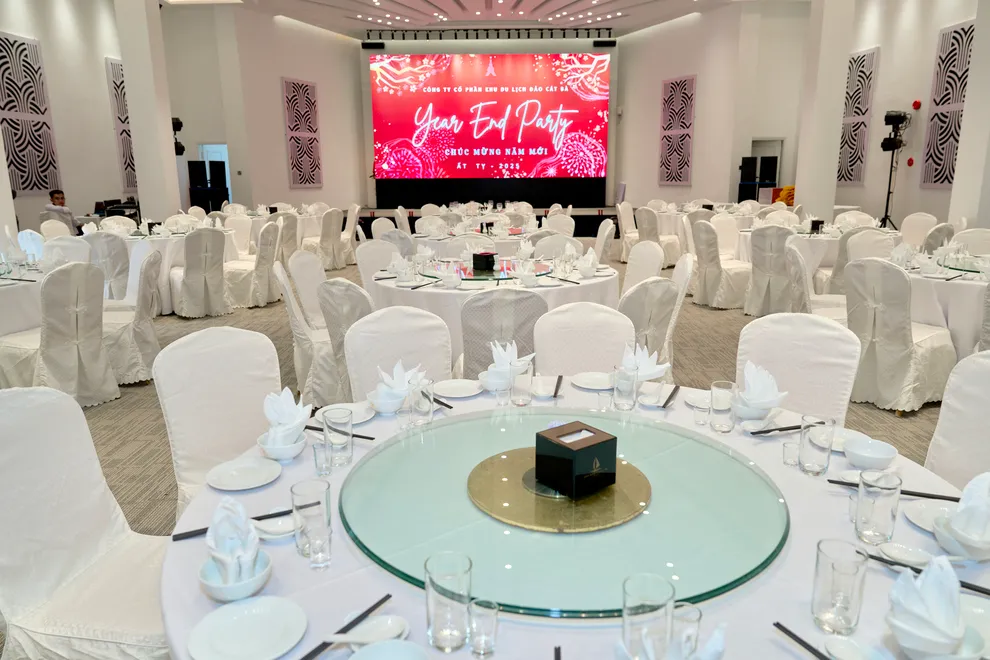 Kết thúc một ngày dài, không gì tuyệt vời hơn việc ghé qua Pirate’s Bar bên hồ bơi, thưởng thức ly cocktail Signature “The May Legend” xanh biếc màu biển cả với giá chỉ khoảng 100.000 VNĐ. Bên cạnh đó, với hệ thống phòng họp hiện đại và các gói tiệc trà (teabreak) tối ưu chi phí chỉ từ 70.000 VNĐ/suất, khu nghỉ dưỡng còn là địa chỉ tin cậy cho các sự kiện MICE của doanh nghiệp. Tựu trung lại, với vị trí đắc địa, dịch vụ trọn gói từ A-Z và mức giá hợp lý trong phân khúc tầm trung cao cấp, The May Legend Cát Bà xứng đáng là lựa chọn hàng đầu cho kỳ nghỉ năm 2025 của bạn.