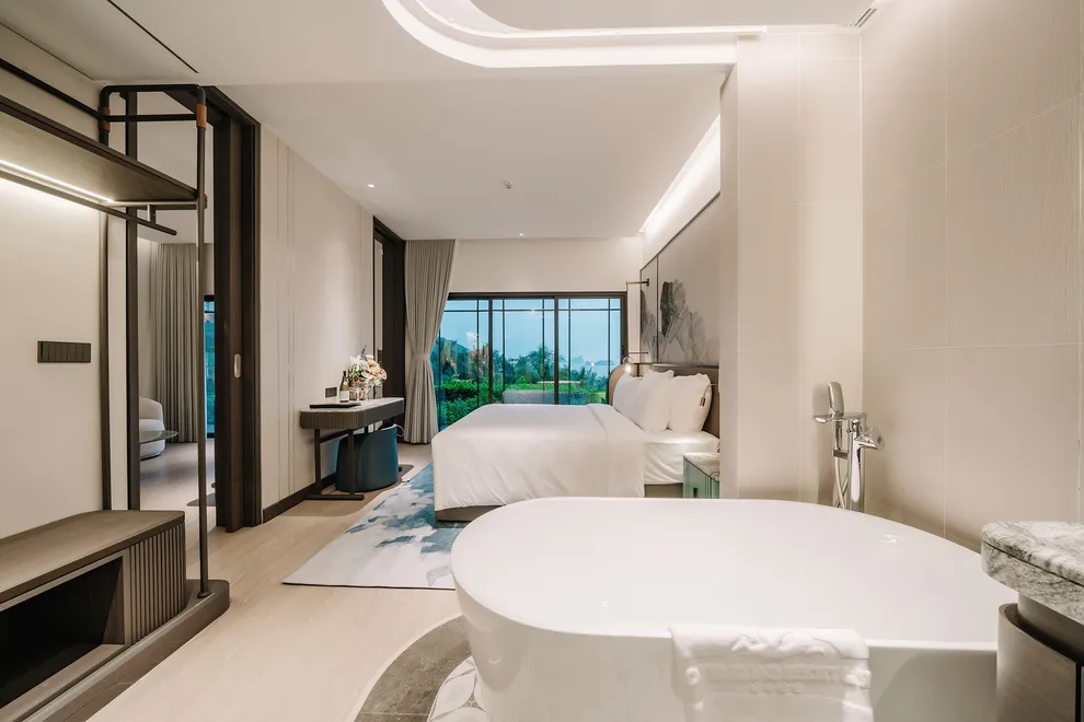 Không phải tất cả các phòng đều có bồn tắm. Theo thiết kế, bồn tắm nằm chỉ được trang bị tại các hạng phòng Deluxe Suite Ocean View và Grand Suite. Các hạng phòng Superior (Mountain/Ocean) tiêu chuẩn sử dụng vòi hoa sen đứng (Standing shower). Nếu bồn tắm là ưu tiên của bạn, vui lòng yêu cầu rõ khi đặt phòng.