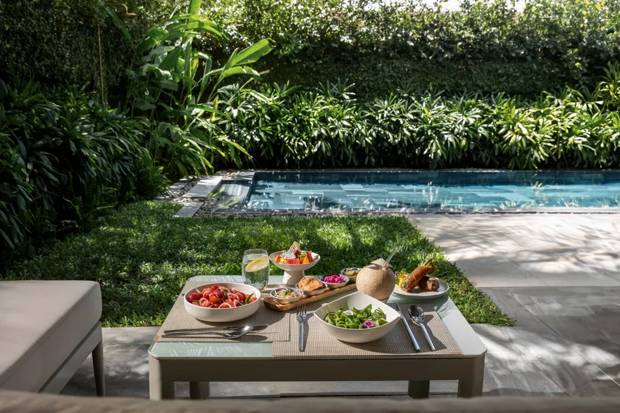 • Lưu trú tại biệt thự hồ bơi riêng và bữa sáng mọi thời điểm trong ngày.