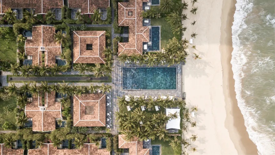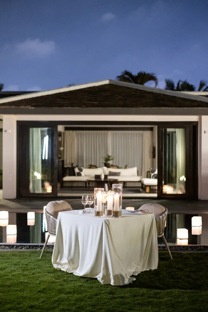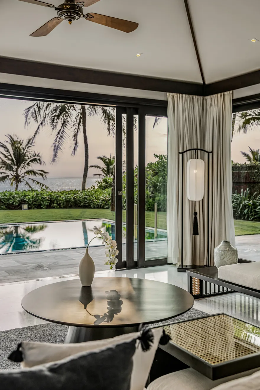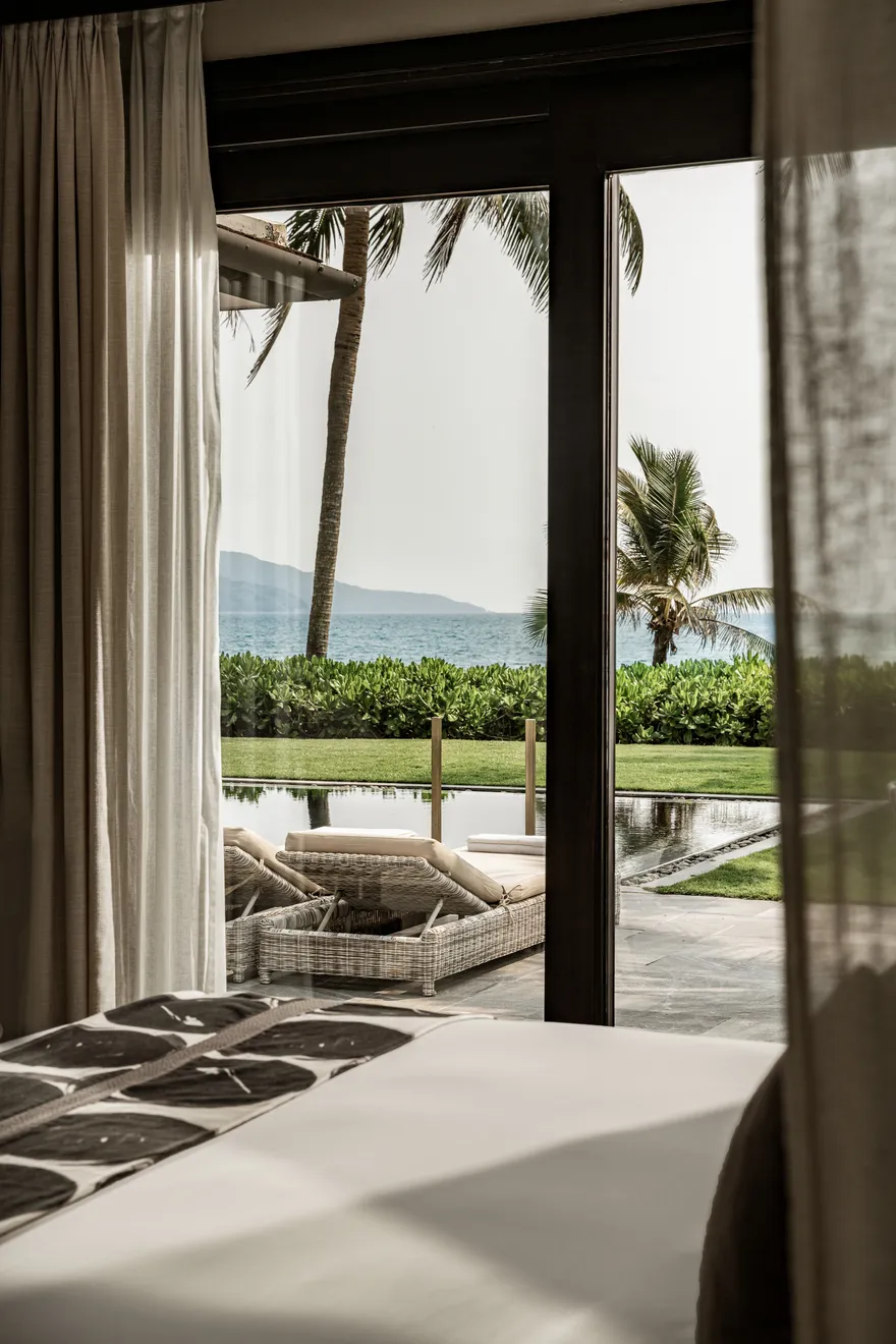 Không gian lưu trú tại đây là sự kết hợp tinh tế giữa kiến trúc di sản và sự riêng tư tuyệt đối. Lấy cảm hứng từ trật tự của Tử Cấm Thành tại cố đô Huế, toàn bộ 87 căn biệt thự đều sở hữu hồ bơi riêng và sân vườn biệt lập. Du khách có thể lựa chọn từ biệt thự một phòng ngủ ấm cúng cho các cặp đôi đến các căn biệt thự hướng biển rộng lớn sát mép nước đại dương, tất cả đều được thiết kế mở để tận dụng tối đa ánh sáng tự nhiên và gió biển.