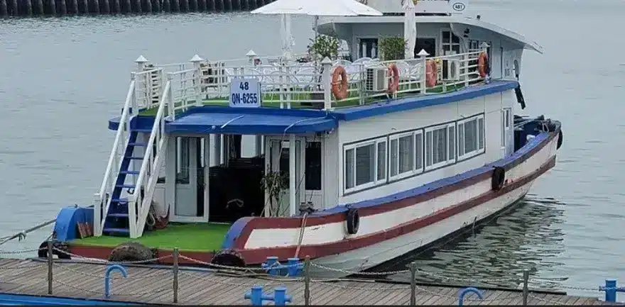 Đồng hành cùng bạn trong hải trình này là du thuyền 2 tầng được thiết kế tiện nghi, chuyên biệt cho việc tham quan vịnh. Tầng 1 là khu vực nhà hàng ấm cúng, nơi bạn sẽ thưởng thức bữa trưa giữa biển khơi. Không gian nhà hàng được bài trí sạch sẽ với các dãy bàn dài, cùng cửa sổ lớn để bạn không bỏ lỡ cảnh đẹp bên ngoài. Tầng 2 là khu vực sundeck (boong tắm nắng) ngoài trời thoáng đãng, địa điểm hoàn hảo để thư giãn, hít thở không khí trong lành và chiêm ngưỡng toàn cảnh Vịnh Bái Tử Long hùng vĩ từ mọi góc độ.