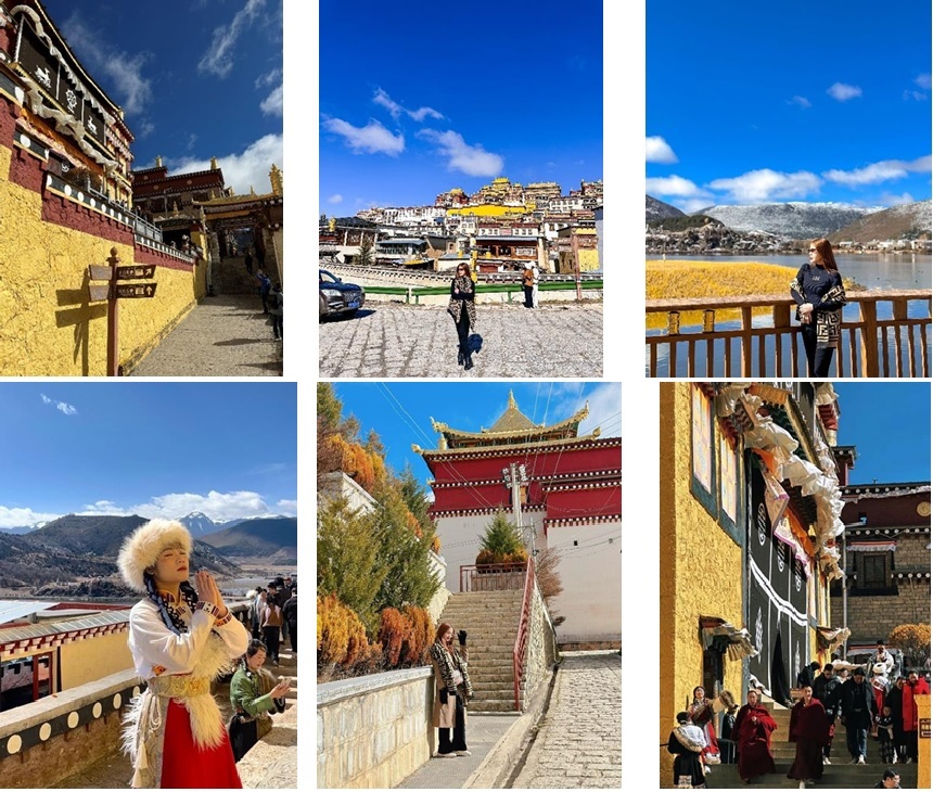 Sau đó, xe và hướng dẫn viên đưa đoàn đến Tu viện Tùng Tán Lâm, còn được gọi là chùa Tùng Tán Lâm hoặc Songzanlin. Đây là một tu viện Phật giáo Tây Tạng nằm ở thành phố Shangri-La, được xây dựng vào năm 1679 bởi vị Đạt Lai Lạt Ma thứ 5 và là tu viện Phật giáo Tây Tạng lớn nhất ở Vân Nam. Nơi đây còn được mệnh danh là “Cung điện Potala thu nhỏ”