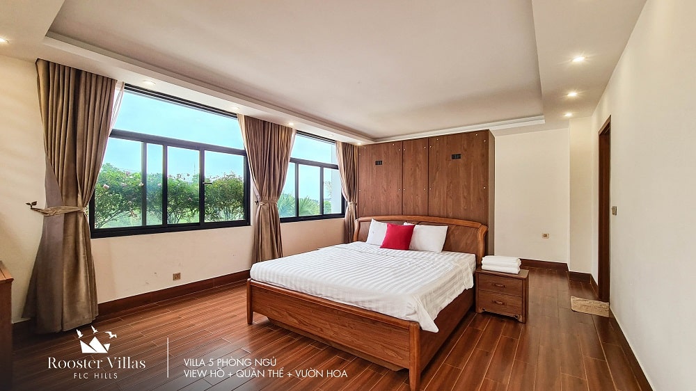 - Biệt thự có 05 phòng ngủ với kích thước gường: 02 gường 1,8m; 03 gường 1,6m; 05 phòng tắm đầy đủ tiện nghi.