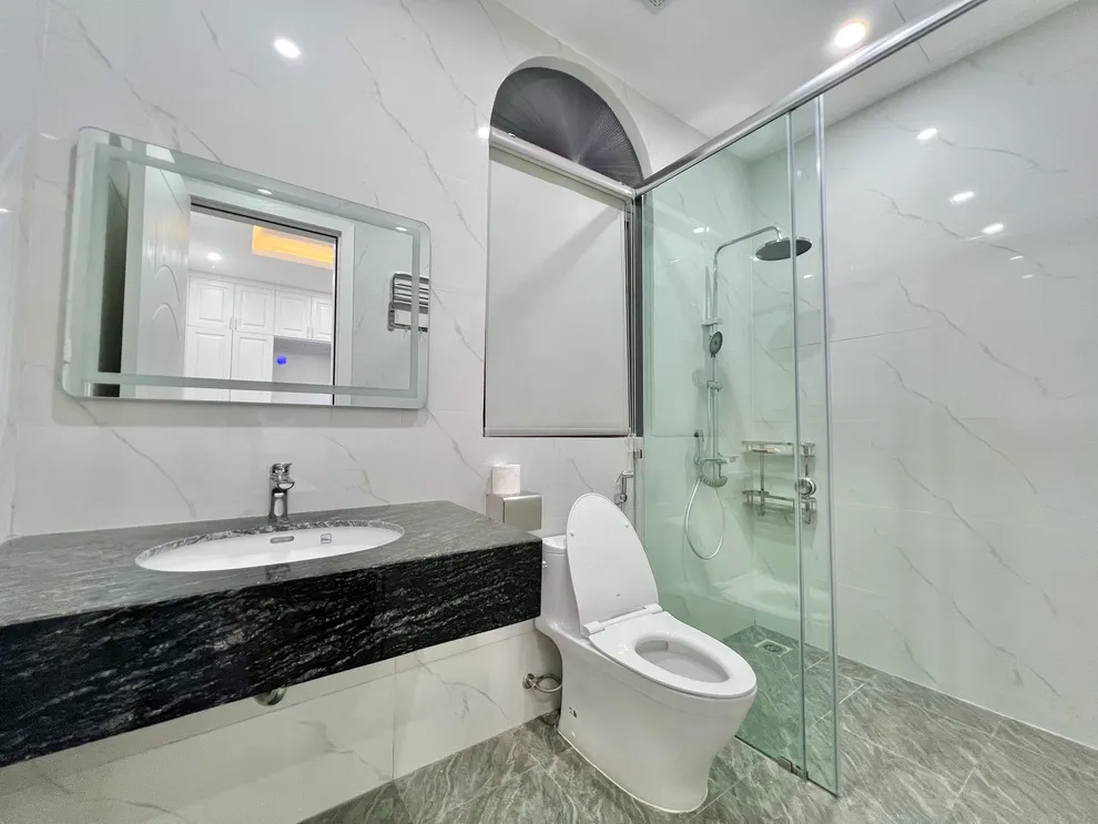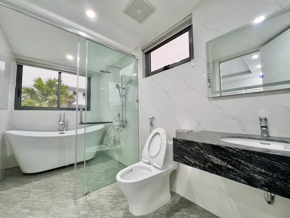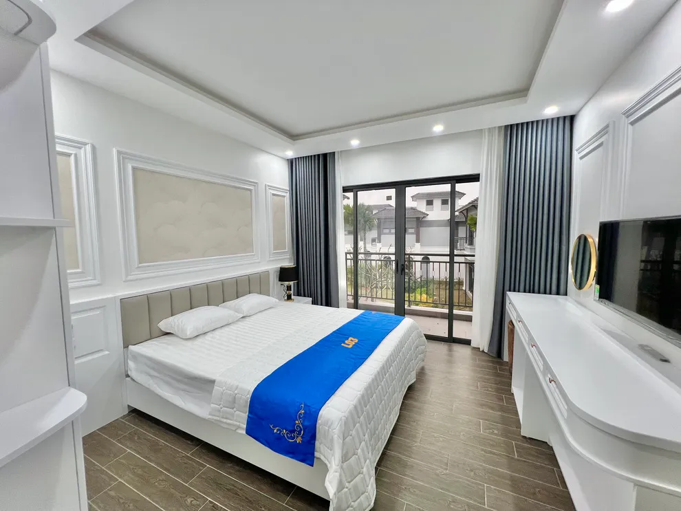 Cấu trúc căn nhà gồm 3 phòng ngủ lớn với cửa sổ kính kịch trần, giúp mỗi buổi sáng thức dậy bạn đều có thể đón nhận trọn vẹn ánh sáng tự nhiên và luồng gió biển tươi mát từ Vịnh Bái Tử Long. Phòng khách được thiết kế như một không gian sinh hoạt chung ấm cúng, kết nối trực tiếp với gian bếp hiện đại và sân vườn phía trước, tạo nên một chuỗi tiện ích liền mạch cho những bữa tiệc gắn kết gia đình. Tại 3L03, sự hiện đại hòa quyện cùng nét thanh bình của biển cả, hứa hẹn một kỳ nghỉ dưỡng trọn vẹn và tràn đầy cảm hứng.