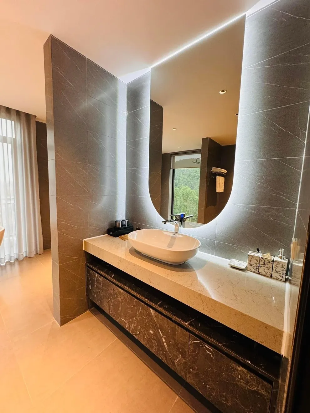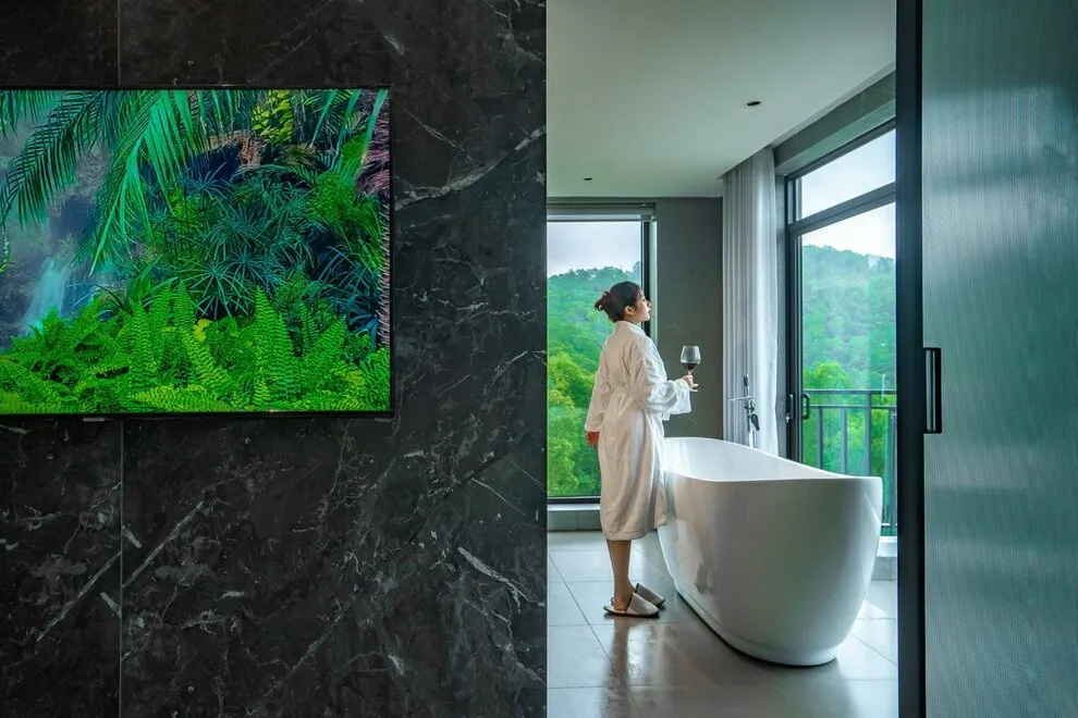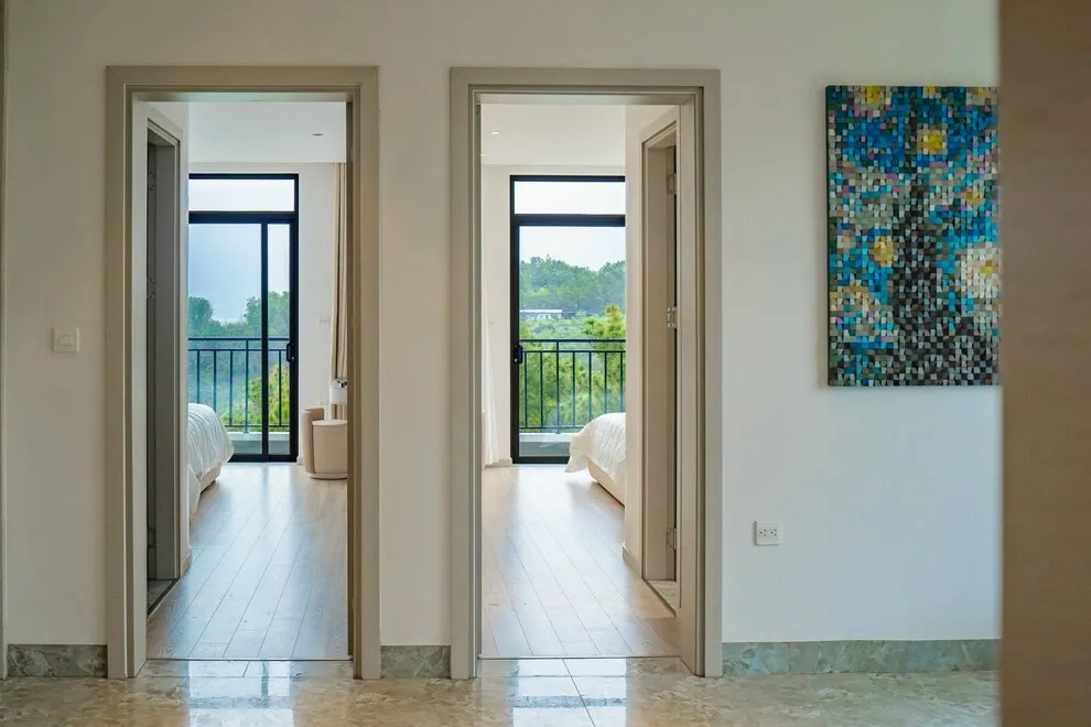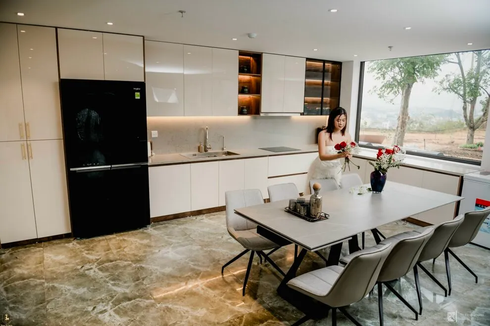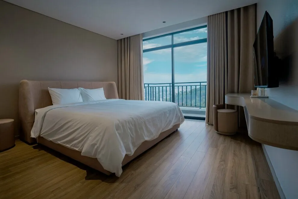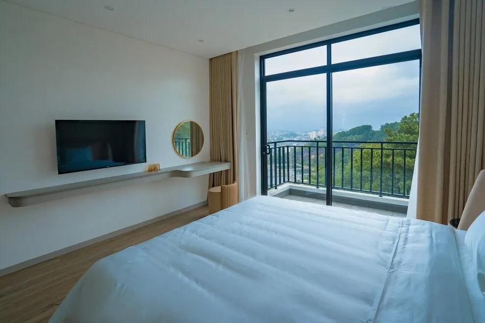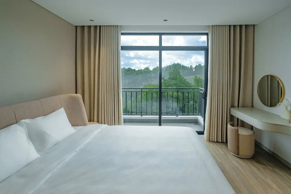 Đỉnh cao của sự xa hoa được đặt tại tầng 6 với phòng Master giường Super King size sở hữu bồn tắm riêng view trực diện rừng thông, mang lại cảm giác thư giãn tuyệt đối. Tuy nhiên, “trái tim” của toàn bộ biệt thự chính là tầng thượng, nơi sở hữu bể bơi vô cực tràn bờ rộng 80m2. Việc đưa tiện ích bể bơi lên tầng cao nhất không chỉ tối ưu hóa tầm nhìn toàn cảnh thành phố từ trên cao mà còn đảm bảo sự riêng tư tuyệt đối, tách biệt hoàn toàn với sự ồn ào đô thị phía dưới. Bên cạnh đó, khu “vườn địa đàng” rộng tới 1000m2 bao quanh biệt thự là nơi lý tưởng để tổ chức các buổi picnic hay trà chiều theo concept tặng kèm, biến kỳ nghỉ của bạn thành một bộ sưu tập ảnh nghệ thuật đúng nghĩa.