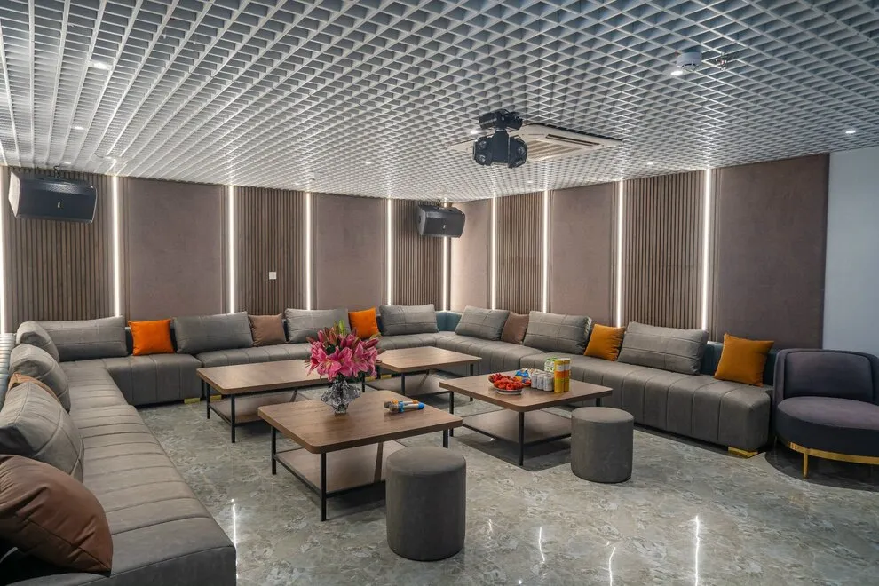 Phòng Karaoke có sức chứa lên đến 60 - 80 người, rất phù hợp cho các hoạt động Team Building hoặc hội thảo quy mô vừa và nhỏ.
