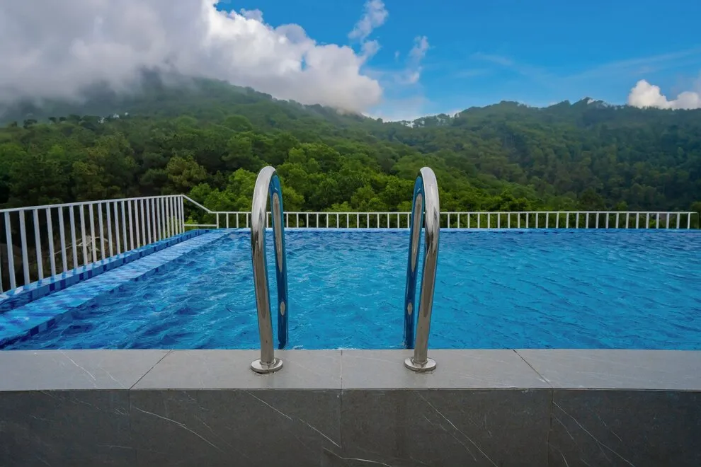 Thiết kế bể bơi vô cực trên tầng thượng nhằm đảm bảo sự riêng tư tuyệt đối, tránh ánh nhìn từ những người đi đường hoặc các biệt thự lân cận.