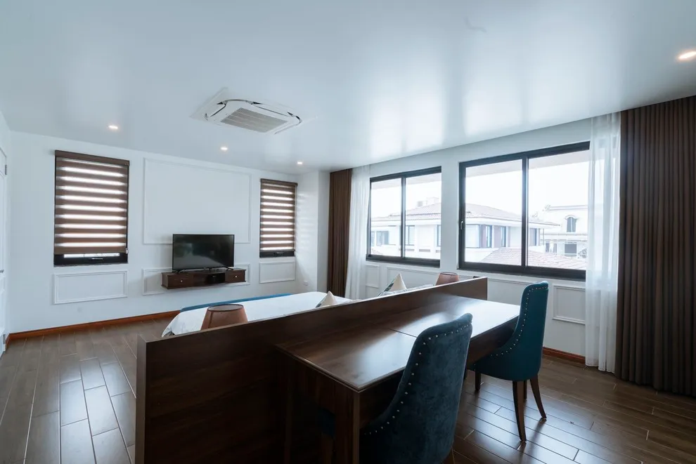 • Giải trí Karaoke: Phòng khách được trang bị tivi 65 inch cùng hệ thống loa đài chuyên nghiệp phục vụ nhu cầu giải trí của cả đoàn.