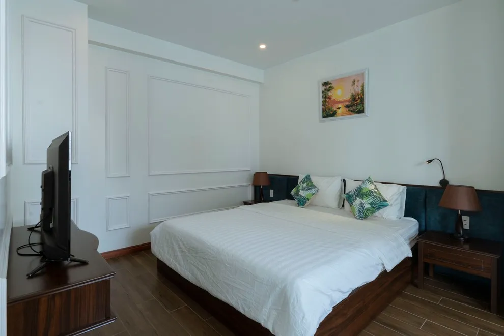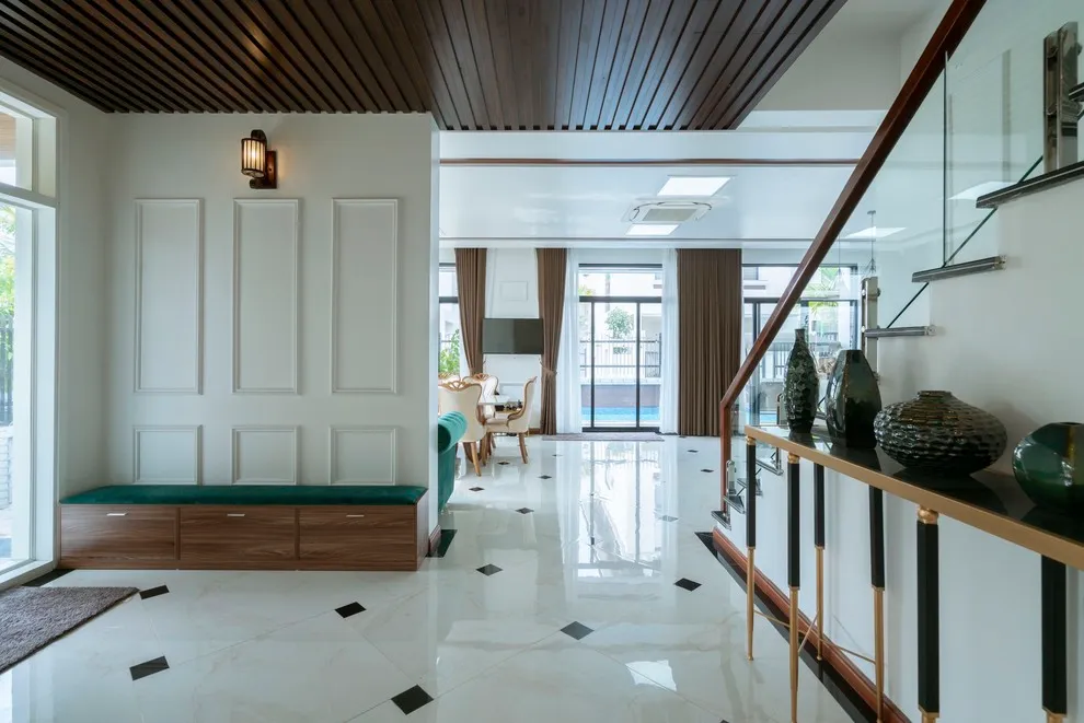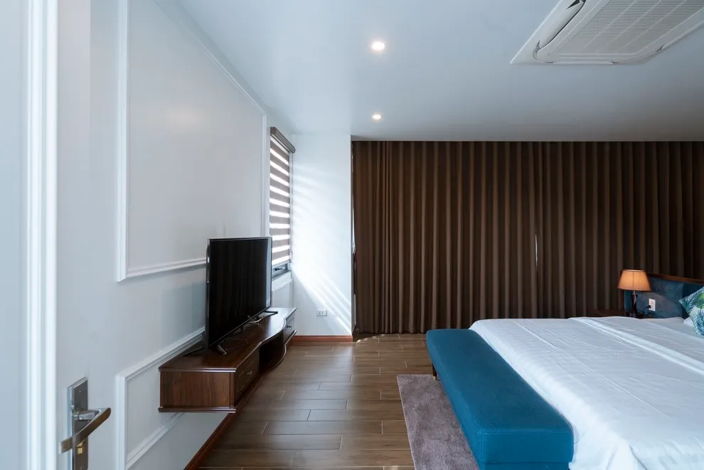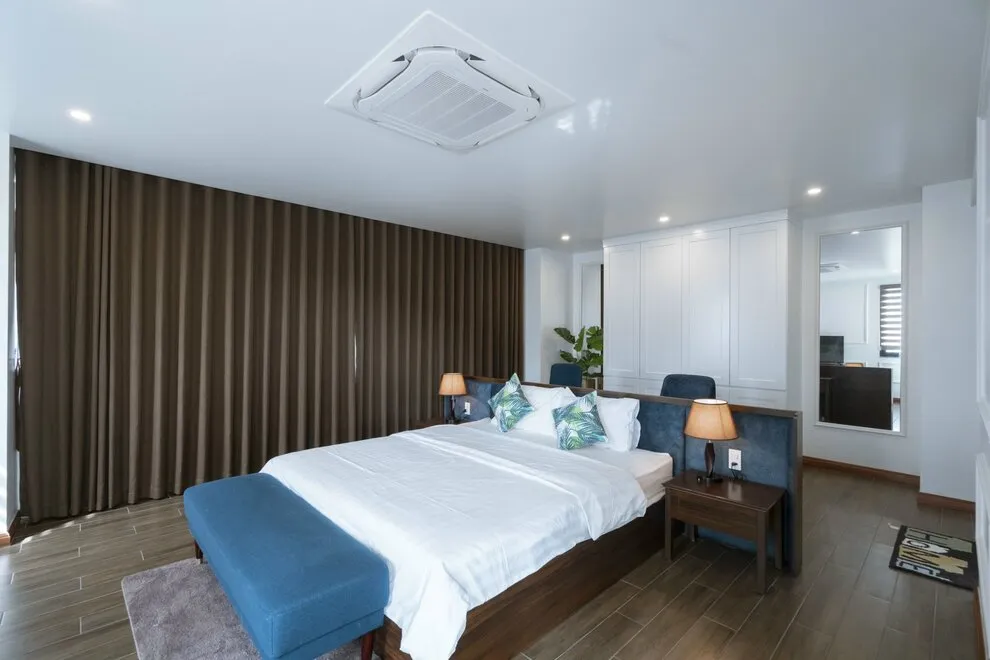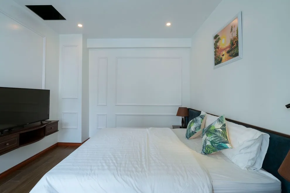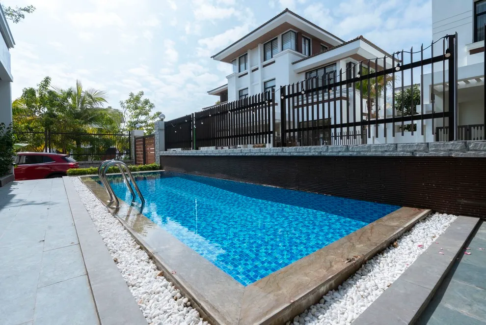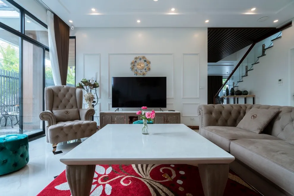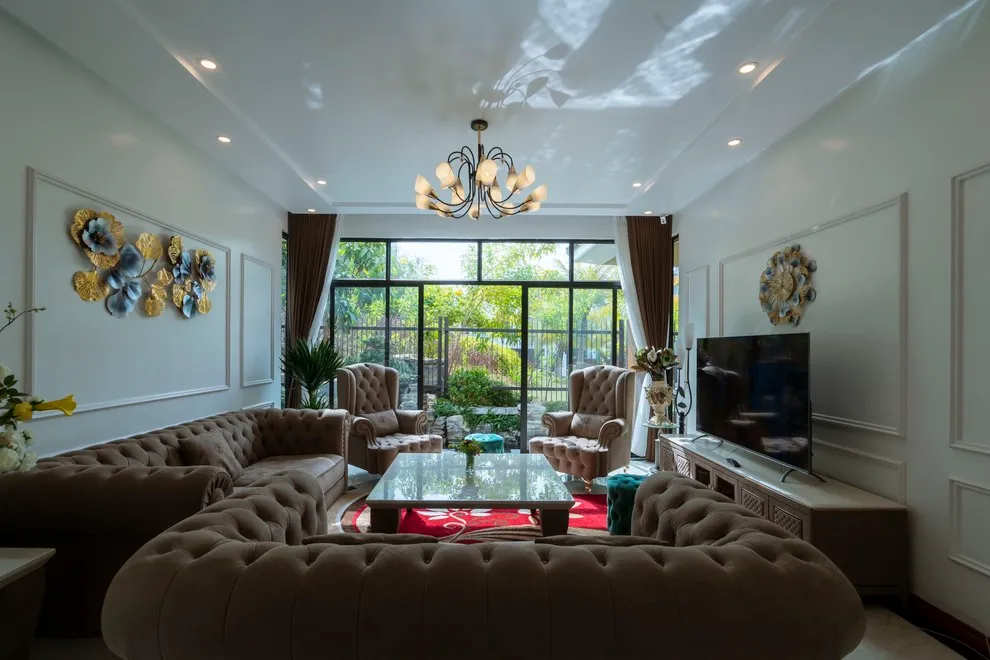 Không gian bên trong được chăm chút tỉ mỉ với nội thất hiện đại, bao gồm 06 phòng ngủ rộng rãi và 05 nhà vệ sinh tiện nghi. Trái tim của biệt thự là phòng bếp được trang bị đầy đủ từ bát đũa đến các thiết bị gia dụng cao cấp như điều hòa trung tâm, tủ lạnh, lò vi sóng và bếp từ, giúp quý khách dễ dàng tổ chức những bữa cơm gia đình đầm ấm. Điểm nhấn ấn tượng nhất chính là bể bơi riêng rộng 35m, nơi quý khách có thể thả mình trong làn nước mát và thư giãn sau một ngày dài khám phá.