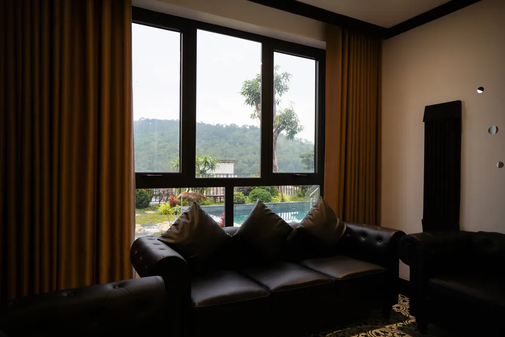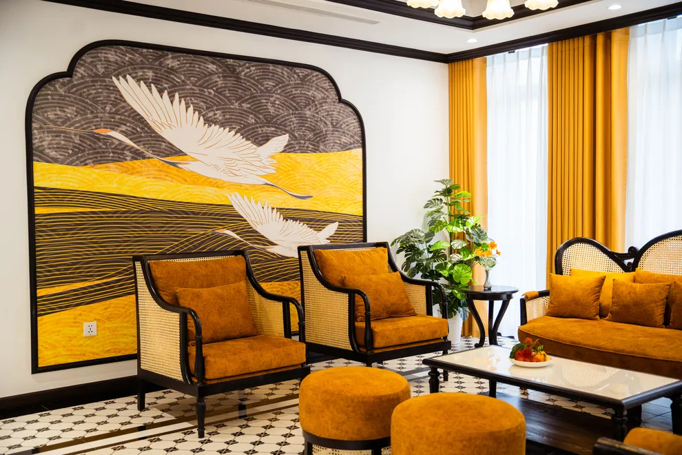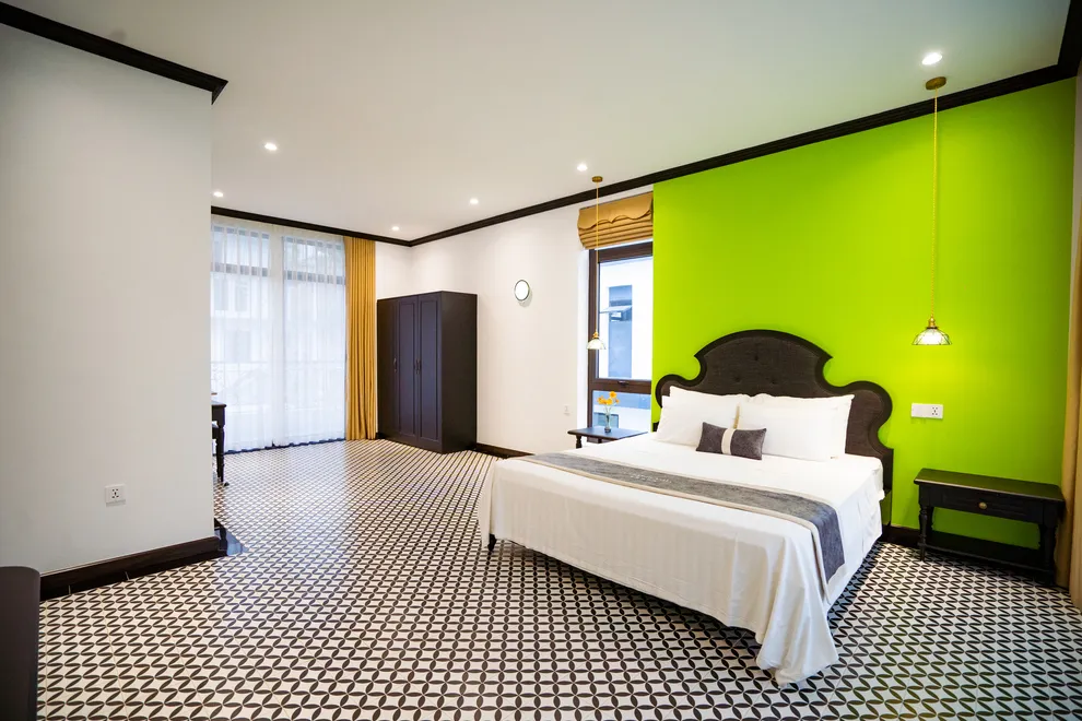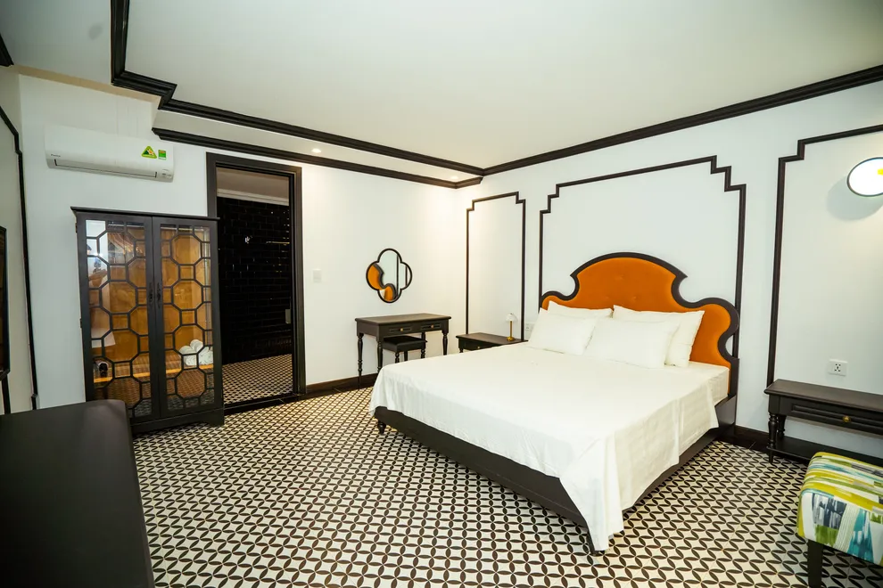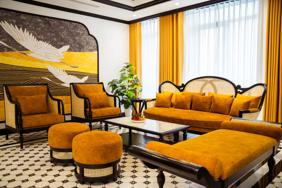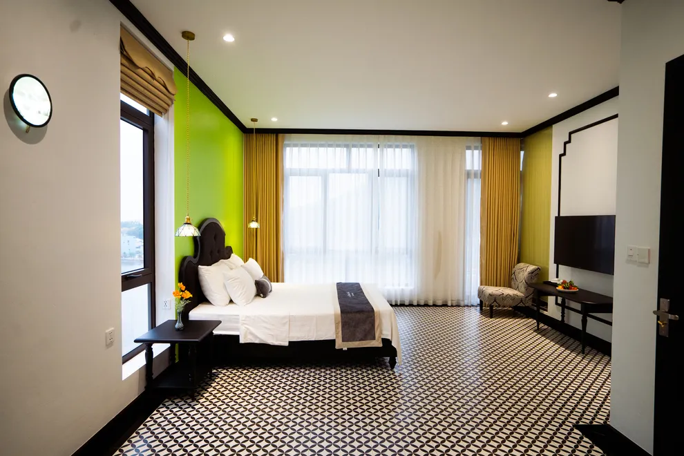 Bước chân vào biệt thự, du khách sẽ ngay lập tức bị chinh phục bởi lối kiến trúc Indochine tinh tế, nơi những chi tiết nội thất gỗ, mây tre đan và gạch bông cổ điển được sắp đặt khéo léo tạo nên không gian ấm cúng, sang trọng. Điểm nhấn của sự tiện nghi nằm ở hệ thống thang máy hiện đại, giúp việc di chuyển giữa 4 tầng lầu trở nên nhẹ nhàng cho cả người già và trẻ nhỏ. Hành trình khám phá bắt đầu từ tầng 1 – không gian tiếp khách thượng lưu với phòng khách rộng rãi và một bàn Bi-a cao cấp đặt ngay sảnh, nơi các cơ thủ có thể giao lưu ngay khi vừa check-in. Tại đây cũng bố trí 01 phòng ngủ Twin rộng rãi, thuận tiện cho việc sinh hoạt.