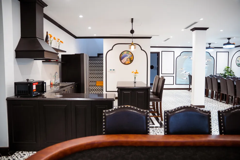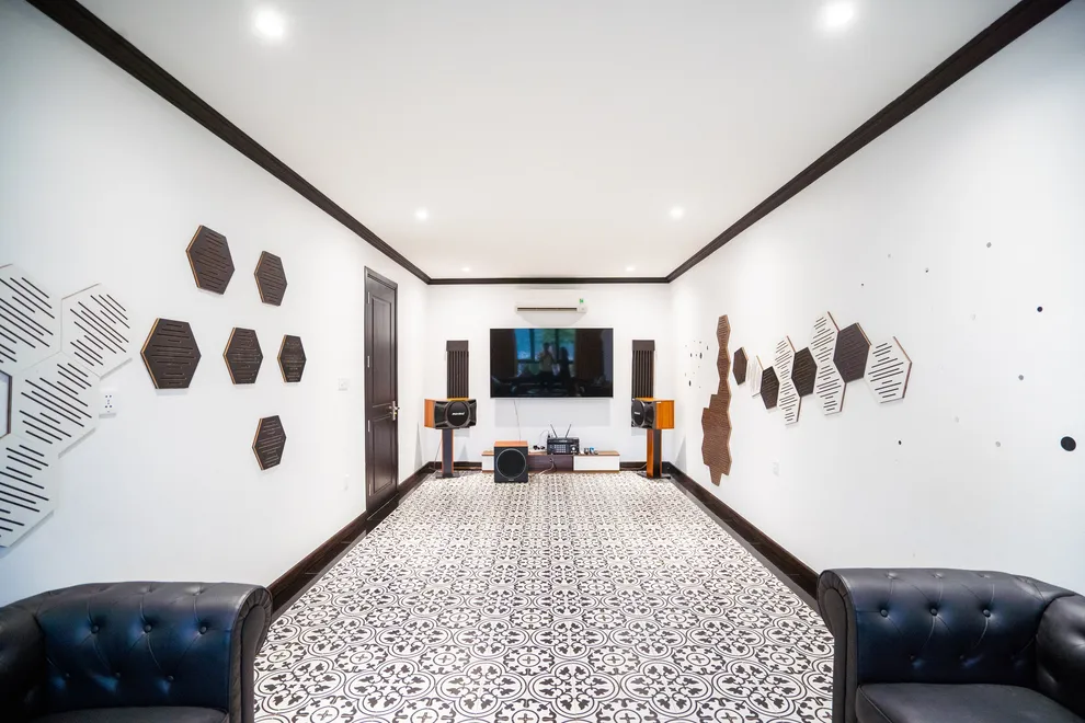 Tuy nhiên, “trái tim” sôi động nhất của căn villa lại nằm ở tầng trệt – thiên đường giải trí biệt lập. Đây là nơi mọi cuộc vui bùng nổ với bể bơi riêng xanh mát, phòng Karaoke trang bị âm thanh xịn sò và đặc biệt là sự xuất hiện của bàn Poker – một tiện ích độc đáo hiếm thấy tại các villa thông thường. Khu vực này còn tích hợp phòng bếp đầy đủ tiện nghi nấu nướng và không gian cho 04 phòng ngủ Double, tạo thành một tổ hợp “ăn – chơi – ngủ” khép kín cực kỳ tiện lợi. Trong khi đó, tầng 2 và tầng 3 là không gian dành cho sự tĩnh lặng với 05 phòng ngủ Double được thiết kế với tầm nhìn thoáng đạt, mang lại giấc ngủ sâu và yên bình sau những giờ vui chơi hết mình.