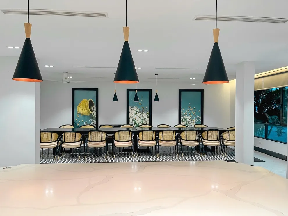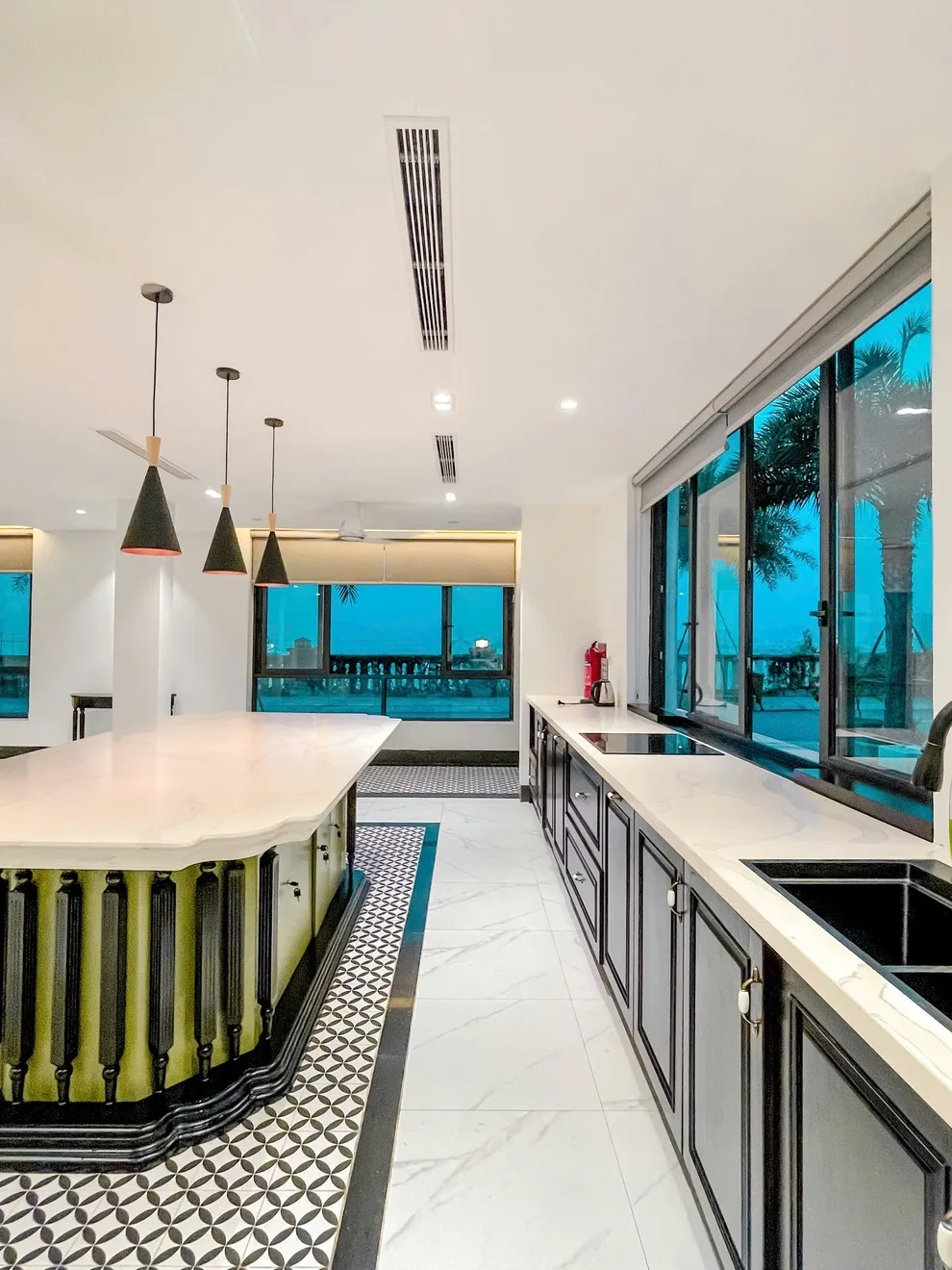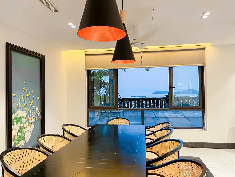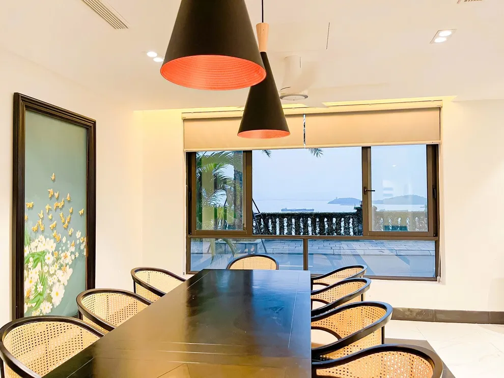 Điểm nhấn nổi bật nhất của căn biệt thự chính là hệ thống 6 phòng ngủ đều sở hữu tầm nhìn hướng biển tuyệt mỹ, giúp bạn thức giấc cùng ánh bình minh rạng rỡ trên mặt nước. Bên cạnh đó, phòng khách rộng rãi và thoáng mát cũng được thiết kế với view biển bao quát, tạo nên một không gian sinh hoạt chung vô cùng đẳng cấp và thư thái cho cả đoàn. Khu vực bếp và phòng ăn được trang bị đầy đủ tiện nghi hiện đại, sẵn sàng phục vụ cho những bữa tiệc gia đình ấm cúng và đầy đủ như chính ngôi nhà của bạn.
