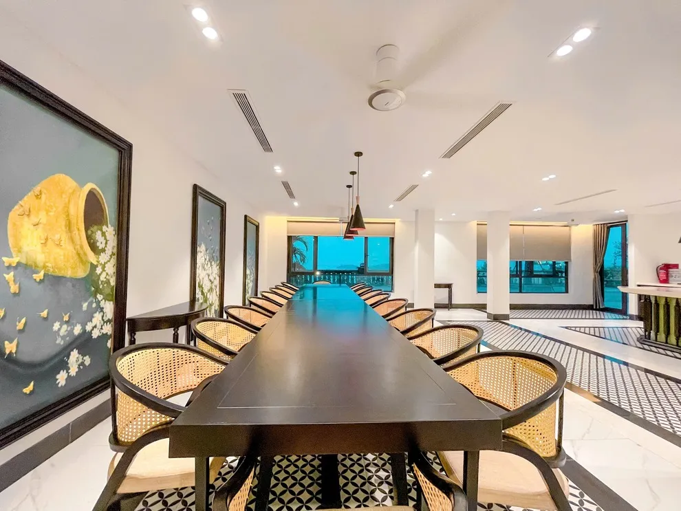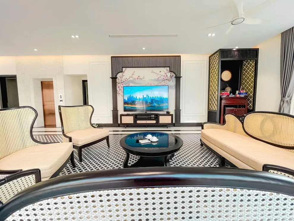 Với tiêu chuẩn phục vụ 12 người lớn và 6 trẻ em dưới 6 tuổi, TT7-05 là lựa chọn lý tưởng cho các nhóm gia đình hoặc bạn bè muốn tìm kiếm sự riêng tư nhưng vẫn đầy đủ tiện ích. Ngoài không gian nội khu villa, du khách còn được tận hưởng trọn vẹn hệ sinh thái đẳng cấp của Beverly Hills Hạ Long như bể bơi vô cực tầm nhìn vịnh, khu vui chơi trẻ em, hay các nhà hàng và quán cafe sang trọng như nhà hàng Đức Dương VIP và Senorita Lounge.